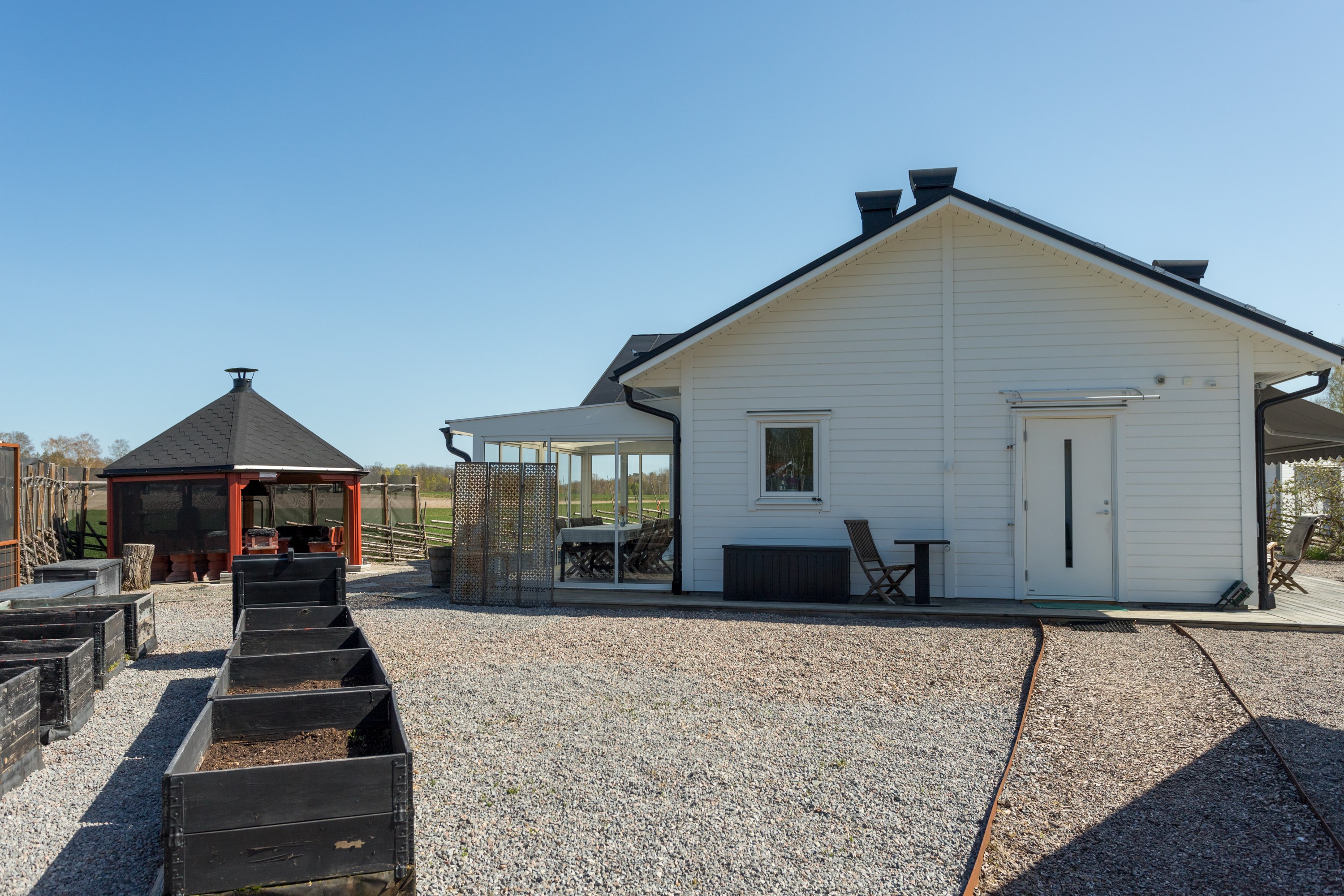 Garage 48 kvm kvm. Läger elden Inglasat uterum 13 kvm.