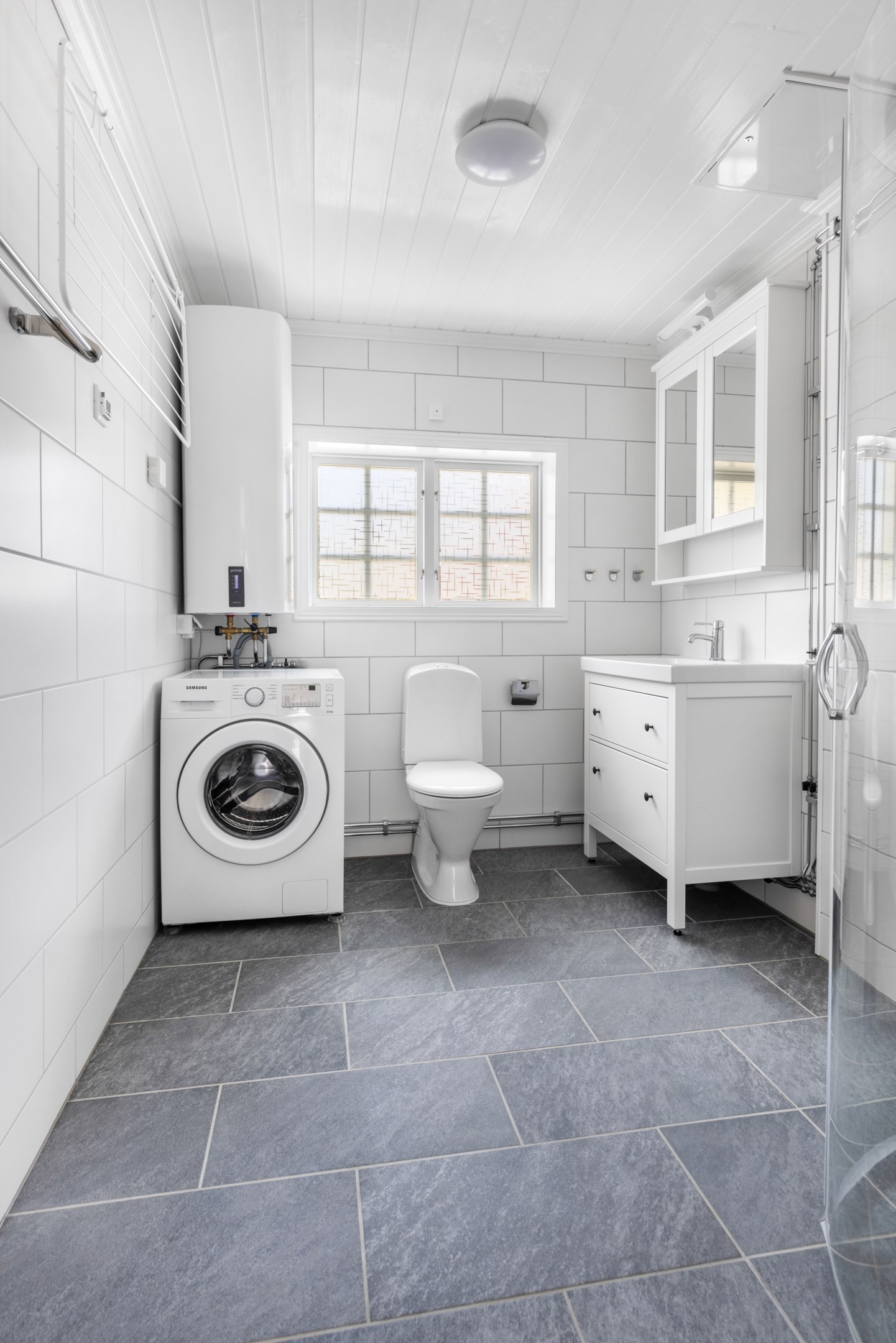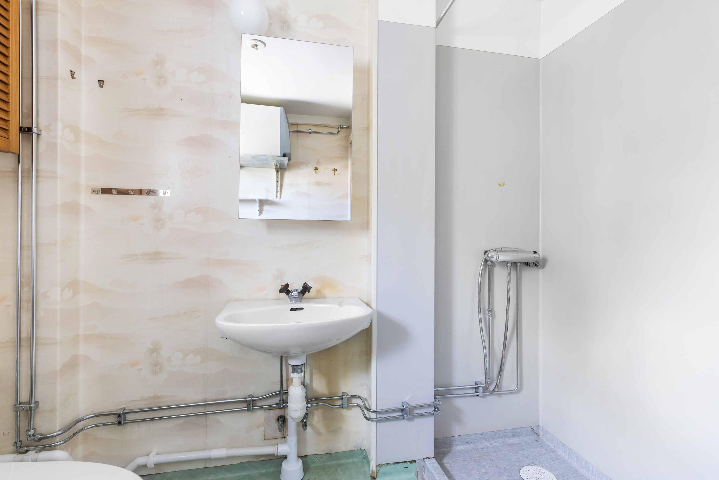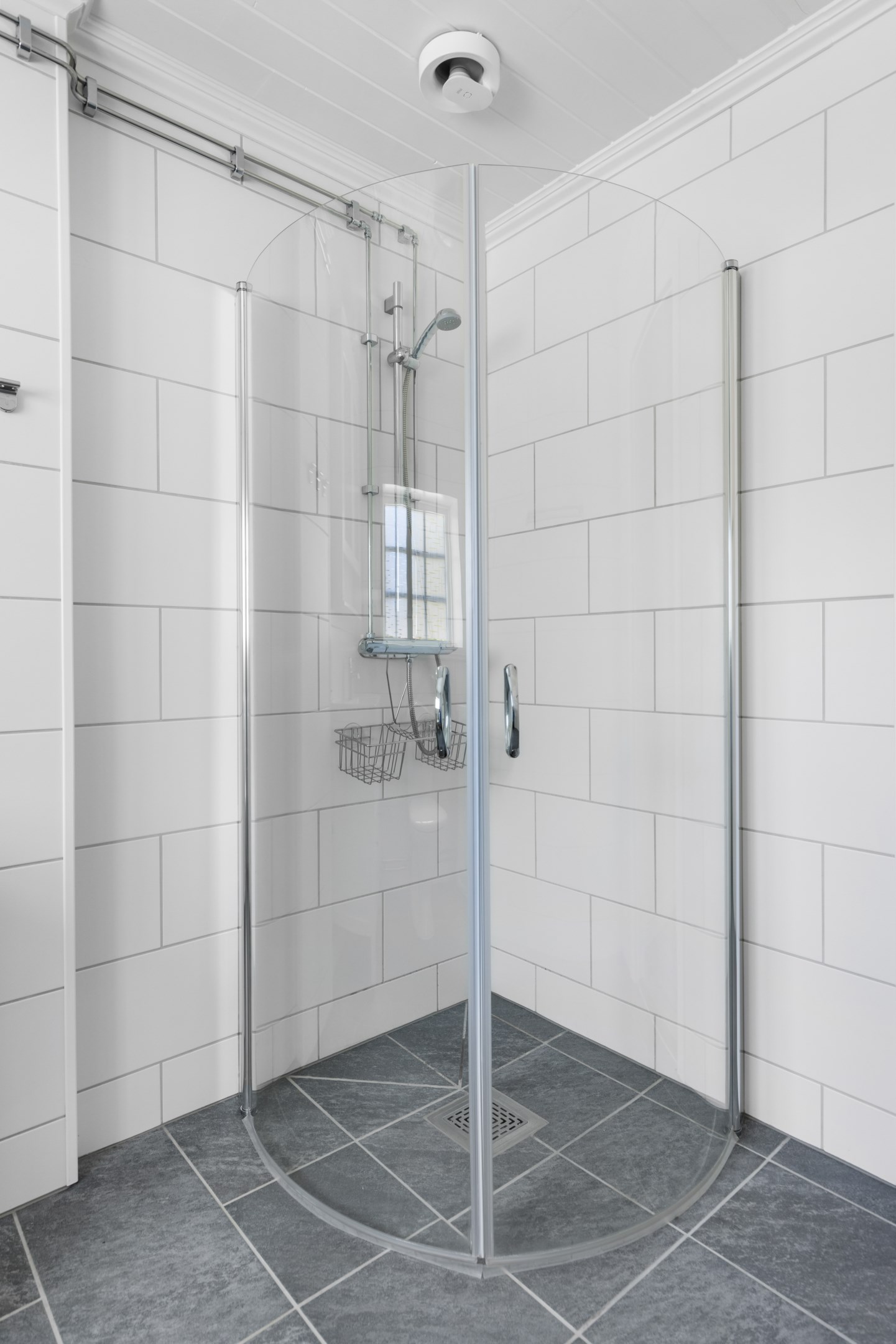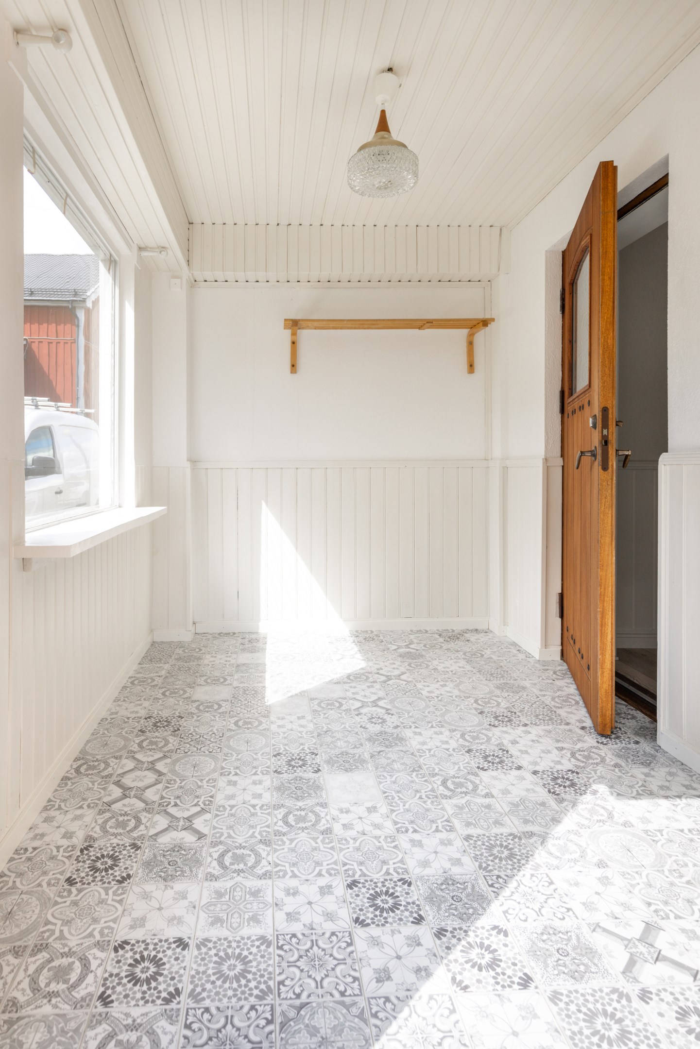 Helrenoverad, ljus och fräsch bostad om 3 rok. Ingång via farstukvist med plats för klädavhängning och skor som leder vidare till inre hall. I slutet av hallen ligger badrum med dusch, tvättmaskin, WC, varmvattenberedare. Till höger från hallen ligger kök som är utrustat med kyl/frys, spis, fläkt, diskmaskin och har plats för matbord. Innanför köket ligger ett av sovrummen som har garderober och plats för dubbelsäng. Åt andra hållet från entrén ligger ett lättmöblerat vardagsrum med kamin och ytterligare ett sovrum med garderobsvägg och även här plats för dubbelsäng. Genomgående har den här lägenheten renoverats under 2020 och har stilrena material och färgval, samtliga vitvaror byttes 2020.