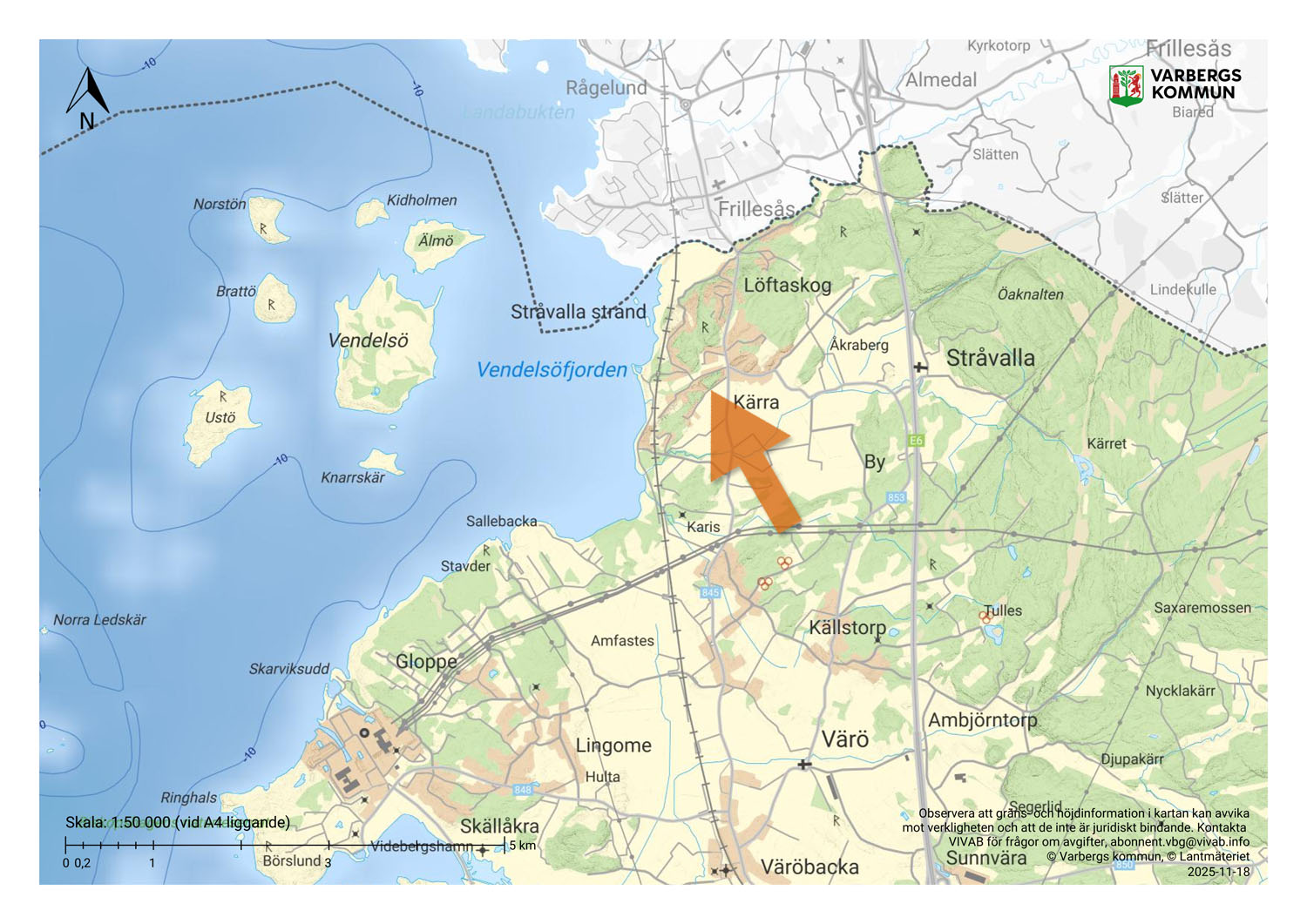 Fastigheten ligger med endast några minuters promenad till salta bad. Stråvalla är en riktig idyll som ligger vackert intill havet med närhet till det mesta. Stråvalla och Frillesås är växande samhällen med en underbar natur och havet som närmaste granne. Längs havslinjen går den gamla järnvägsbanan som idag är ett mysigt promenad- och cykelstråk som tar dig bort mot Stråvalla Strands badplats med fina sandstränder. Vendelsöarna och tillhörande naturreservat är ett välkänt utflyktsmål och nås lätt från bl.a. båthamnen i Stråvalla och Stavder. Här finns ett rikt djurliv under ytan med bla krabbor, räkor, snäckor och musslor. Båtlivet är omfattande med en mångfald av vikar och fina sandstränder på kort avstånd. Stråvalla är sommartid en populär turistort med en av Västsveriges bästa sandstränder och marina med båtklubb. Marinan har plats för ett 100-tal fritidsbåtar. Stråvalla Strands fritidsförening anordnar årligen simskola, yoga, sommarfester m.m. Här finns även kiosk, tennisbana, boulebana, ridskola, simskola och seglarskola. Området lockar en hel del konstnärer med tillhörande utställningar och kurser. Området och landskapet består till stora delar av åkrar, betesmark och delvis skog. I närområdena till Stråvalla finns rikligt med svamp och bär, blåbär och lingon. Här finns ett flertal välskötta hästgårdar och ridskolor vackert belägna i det böljande och öppna landskapet med närhet till havet. Natursköna omgivningar skapar ett eldorado för båtliv, fiske, bad, golf, tennis, promenader, cykling och motion och rekreation i olika former.