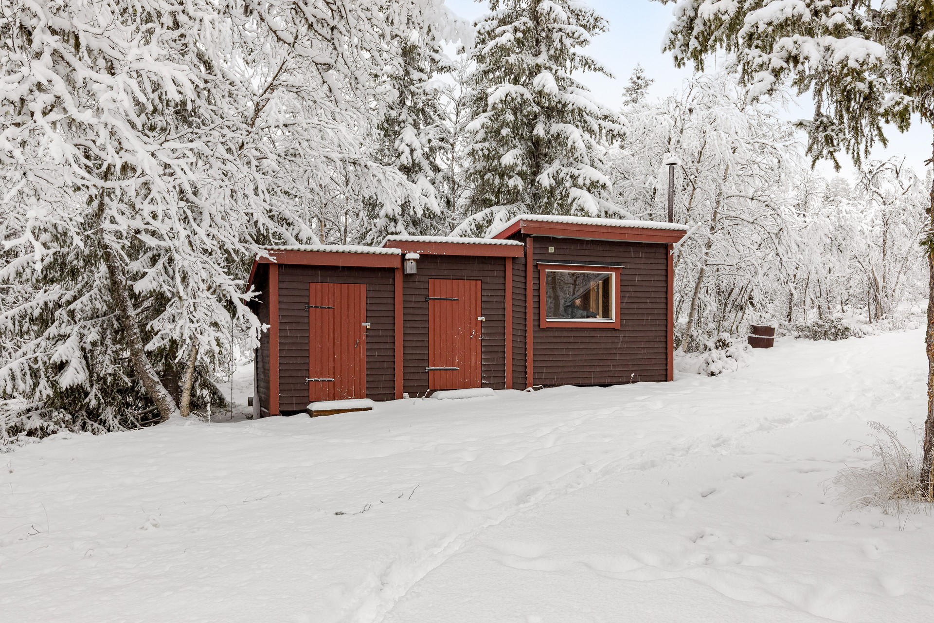 KOMBINERAT GÄSTRUM/FÖRRÅDSRUM: På tomten finns en byggnad (ca 10 kvm byggnadsarea) som inrymmer två separata delar. En del består av ett isolerat gästrum, ca 6 kvm. med familjesäng och byrå. Uppvärmning genom direktverkande el. Rummet har laminatgolv, bröstpanel och tapet på väggar samt träpanel i tak. 2-glas fönster. Den andra delen av byggnaden består av ett förrådsrum, ca 4 kvm. (oisolerat) med extra kyl/frys samt hyllförvaring. Byggnaden har en grundläggning av plintar och fasad av liggande träpanel samt plåttak. Vidbyggt finns ett utrymme med snedtak för t. ex. skoterförvaring med trall mot mark. BASTUBYGGNAD MED KALLFÖRRÅD: Den andra förrådsbyggnaden på tomten består av separat del med vedeldad bastu och omklädningsrum. Förutom bastun, finns två oisolerad förråd i samma byggnad för förvaring av bl. a. ved och friluftsutrustning.