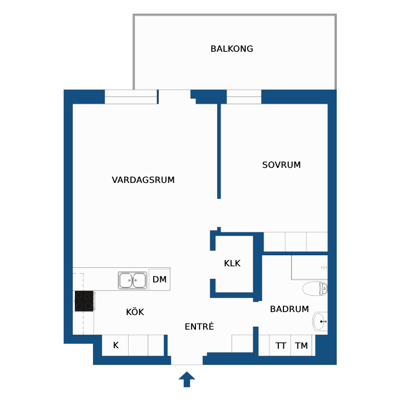 Välplanerad och ljus lägenhet med generösa förvaringsutrymmen. Bostaden välkomnar med en hall med stilrent klinkergolv, avhängningsmöjligheter och garderob. Redan här möts man av ett fint ljusinsläpp från vardagsrummet, som har utgång till balkong. Vardagsrummet har en öppen och social planlösning mot köket, som är utrustat med vit skåpinredning och full maskinell utrustning. Det helkaklade badrummet är rymligt och modernt med dusch, WC, tvättställ med kommod, behaglig golvvärme samt tvättmaskin, torktumlare och praktisk arbetsbänk. Sovrummet erbjuder goda förvaringsmöjligheter genom garderober och kompletteras av en separat walk-in-closet.