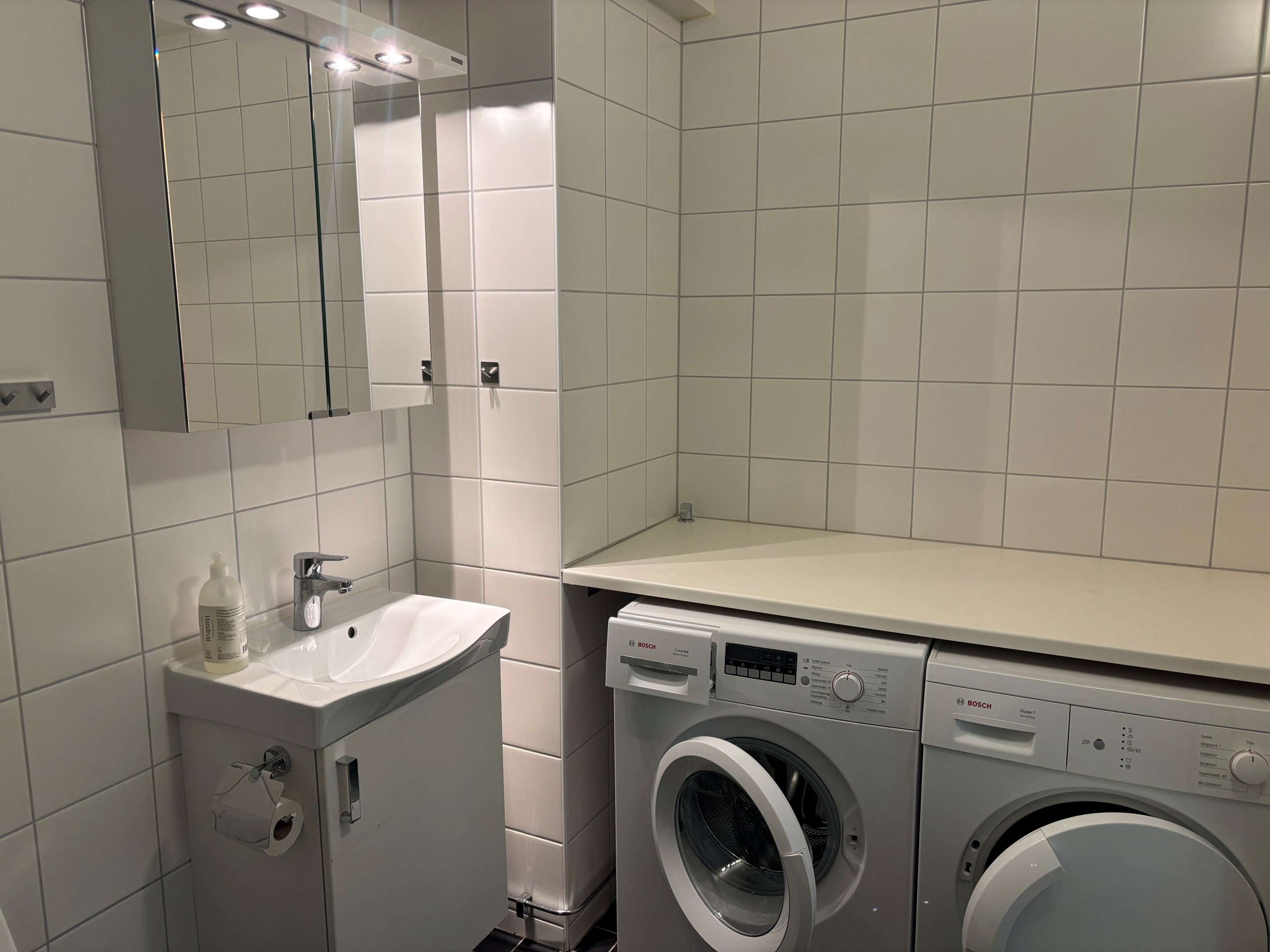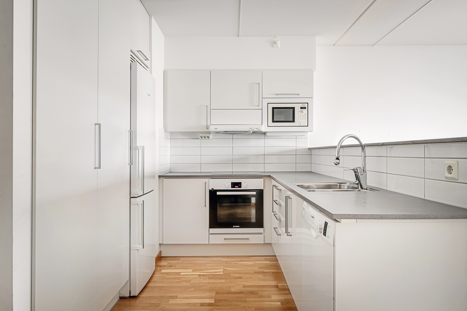 Bosch kyl, frys, spis, mikro ugn samt diskmaskin. Städskåp.