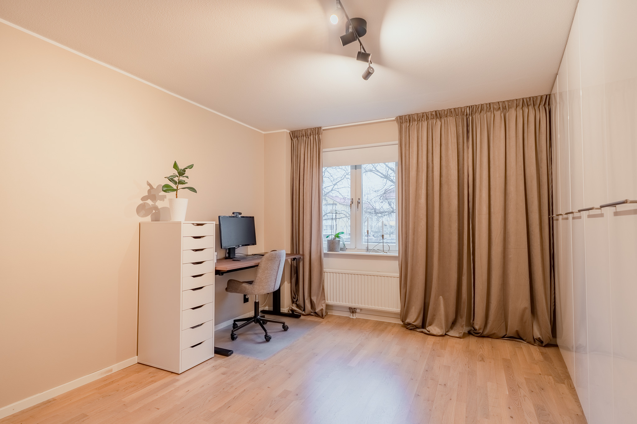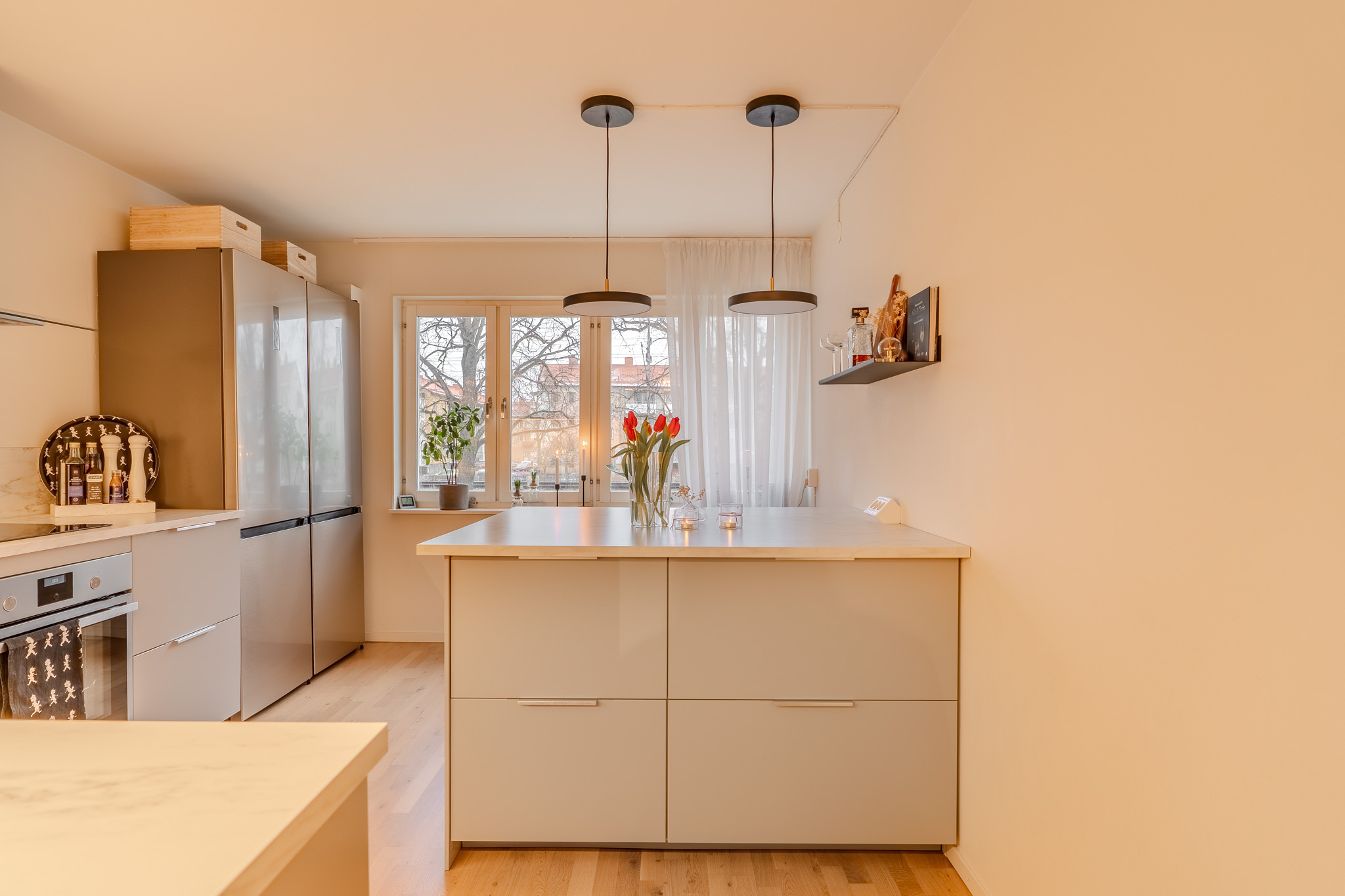 Nu kan vi stolt presentera denna bostad som verkligen har allt – här erbjuds en topprenoverad trea med möjlighet till egen parkeringsplats! Belägen i ett av Eskilstunas mest eftertraktade områden, erbjuder denna lägenhet en perfekt kombination av stil och komfort. Med bekväm parkering på föreningens parkeringsplats kan du enkelt parkera bilen och sedan ta hissen upp till denna lägenhet som ligger lugnt belägen i huset. Denna lägenhet är välskött och har renoverats med stor omsorg och smakfulla detaljer som skapar en harmonisk atmosfär. De sobra färgvalen på väggarna kompletterar de fina golven och ger ett stilrent intryck. Köket är generöst och har gott om förvaring i både skåp och lådor. Utöver detta erbjuder köket moderna vitvaror och en stor köksö. Vidare in i bostaden möts vi av ett rymligt vardagsrum som med enkelhet rymmer en större soffa, matsalsmöbel tv-möbel och övrigt möblemang om det önskas. Från vardagsrummet tar vi oss ut till balkongen som erbjuder sol under dagen samt en markis. Badrummet erbjuder gott om förvaring i väggskåp samt kommod här finns även tvättpelare, wc, och en modern dusch bakom vikbara glasdörrar. Bostaden har två luftiga sovrum, båda med plats för dubbelsäng samt att det ena är utrustat med en garderobsvägg. BRF Släggan är en mycket välskött och lågt belånad förening, vilket ger dig en trygg och trivsam boendemiljö. Området Söder i Eskilstuna är en trevlig och populär plats med grönskande parker och vackra promenadstråk längs ån. Vid Sveaplan finns allt man behöver, allt från gym och mataffärer till restauranger och vårdcentraler. Gamla stadens charmiga butiker, caféer och salonger erbjuder en mix av shopping och avkoppling. En kort promenad över ån tar dig till tågstationen, centrum och universitetet åt ena hållet, och till Mälarsjukhuset åt andra hållet. Varmt välkommen med din intresseanmälan för att få möjligheten att bo här!