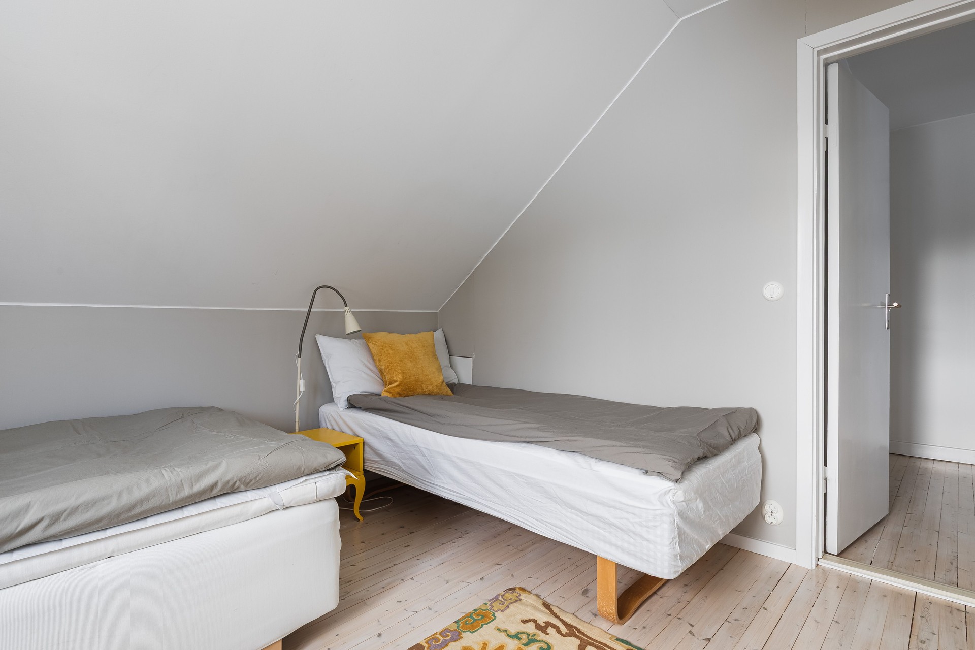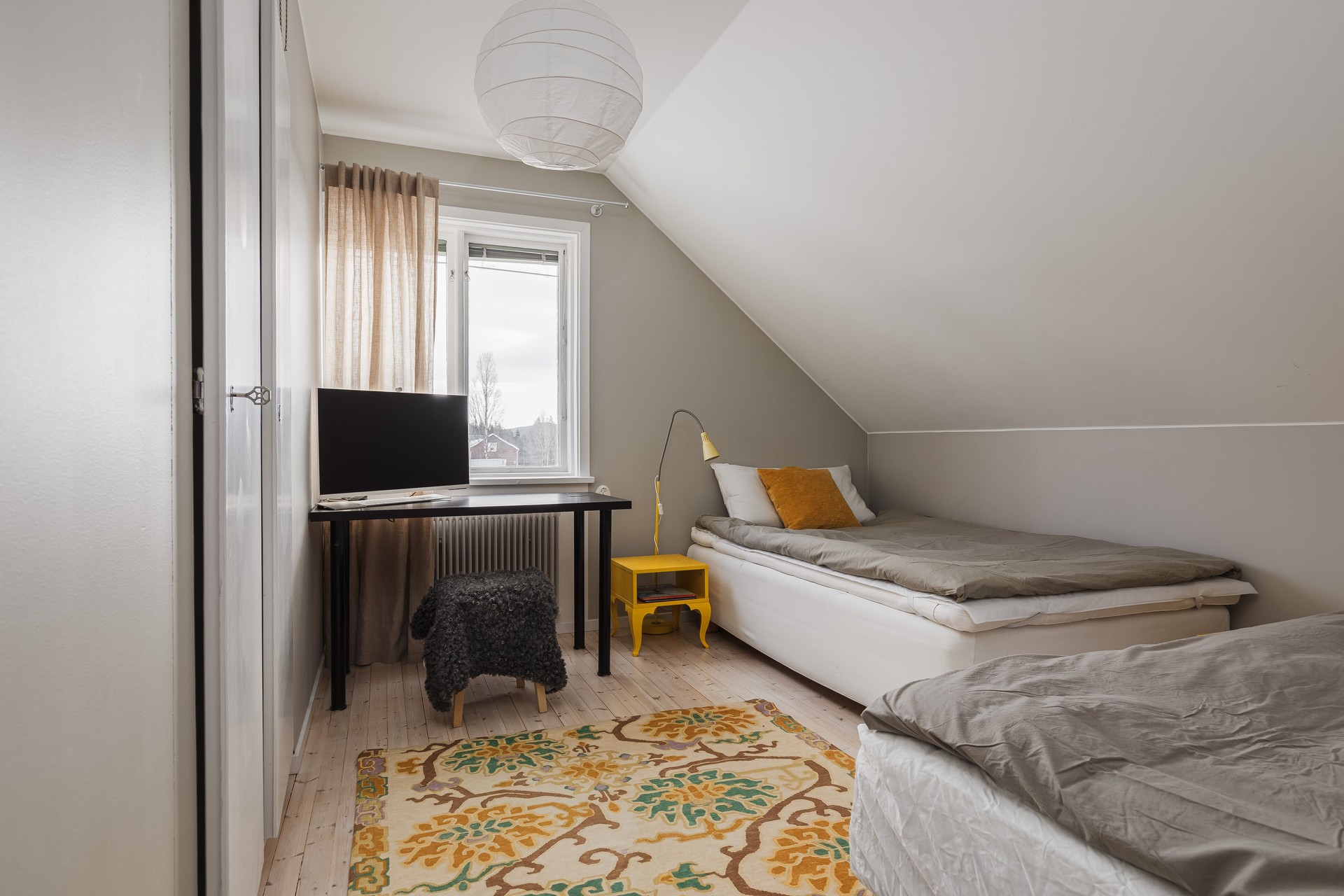 Sovrummet är beläget vägg i vägg med sovrum 2 och inrymmer idag två enkelsängar, skrivbord och garderober.