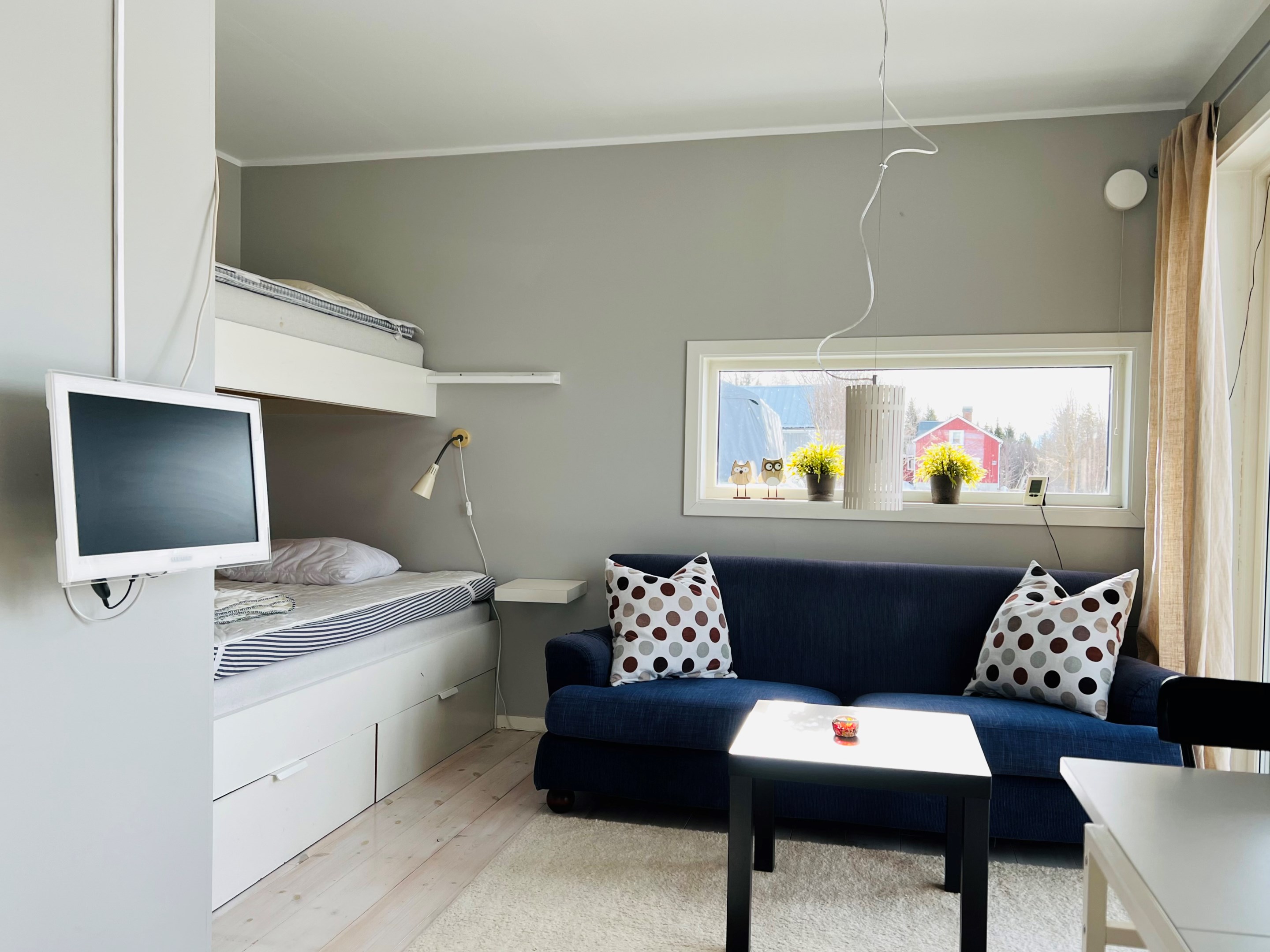 På fastigheten finns en gäststuga om ca 20 kvm. boarea, uppförd 2011. Ett hus med kombinerat kök/vardagsrum/sovrum och badrum. Byggnaden har en grundläggning med plintar, fasad av stående träpanel och torvtak. 2-glasisoler fönster och altandäck utanför i söderläge. Köket inrymmer diskho nedfälld i bänkskiva, induktionshäll med två plattor och kylskåp. I rummet finns även en familjesäng med 120 cm. + 90 cm. bädd, tv, soffa och dubbel altandörr. Badrummet inrymmer wc, dusch och handfat samt varmvattenberedare i takkonstruktionen. Intill gäststugan finns en mindre förrådsbyggnad med plats för skidor, utemöbler och cyklar. På tomten finns också en större förrådsbyggnad från 70-talet. Byggnaden är oisolerad.