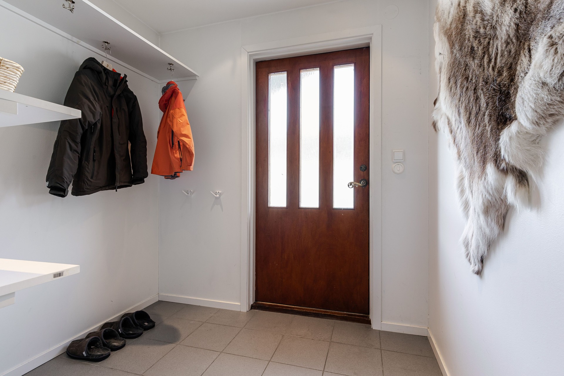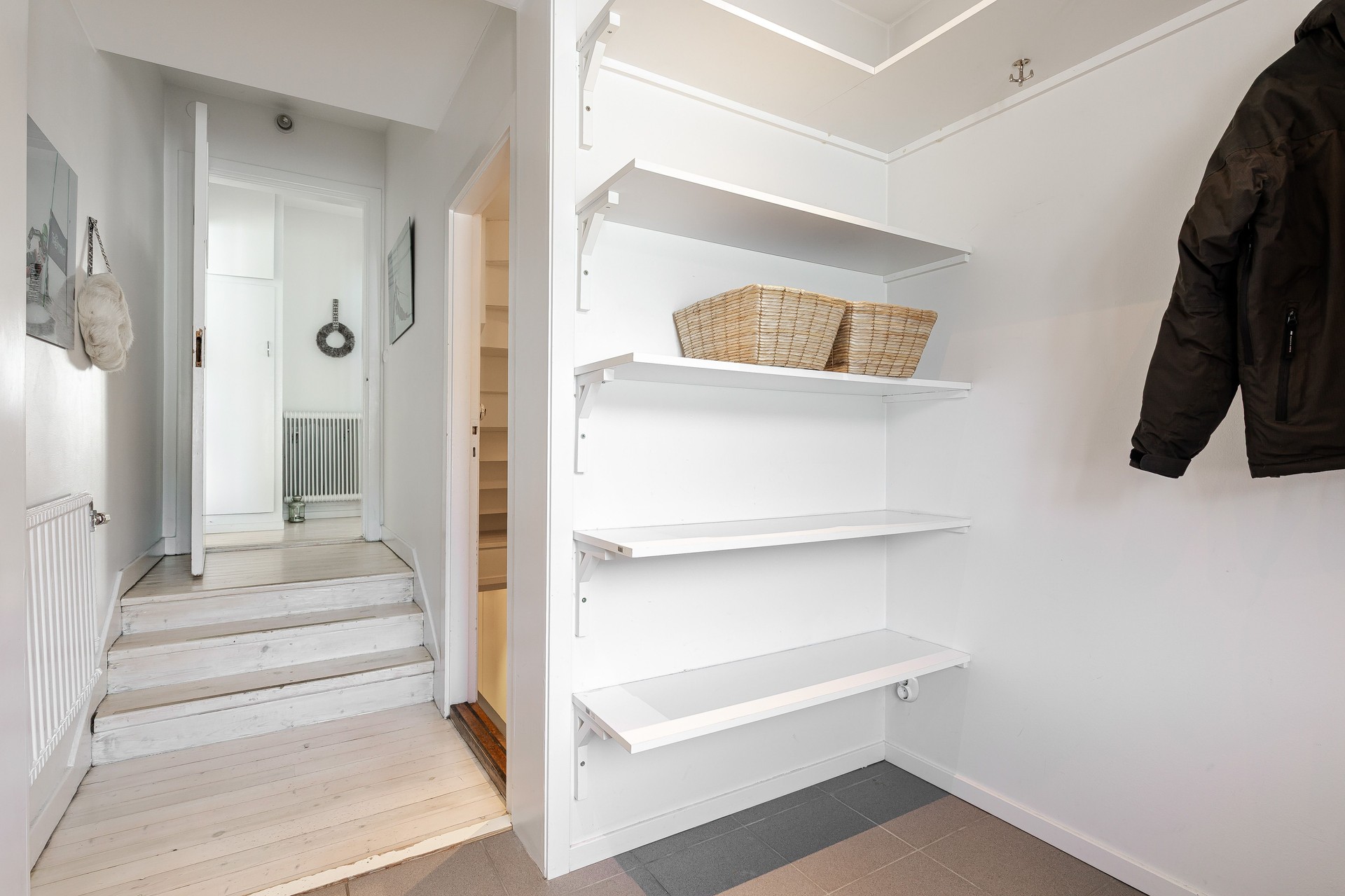 Utrymmet under trappan är också praktiskt. Här kan du sommarförvara alla vinterns skidor eller vad du vill.