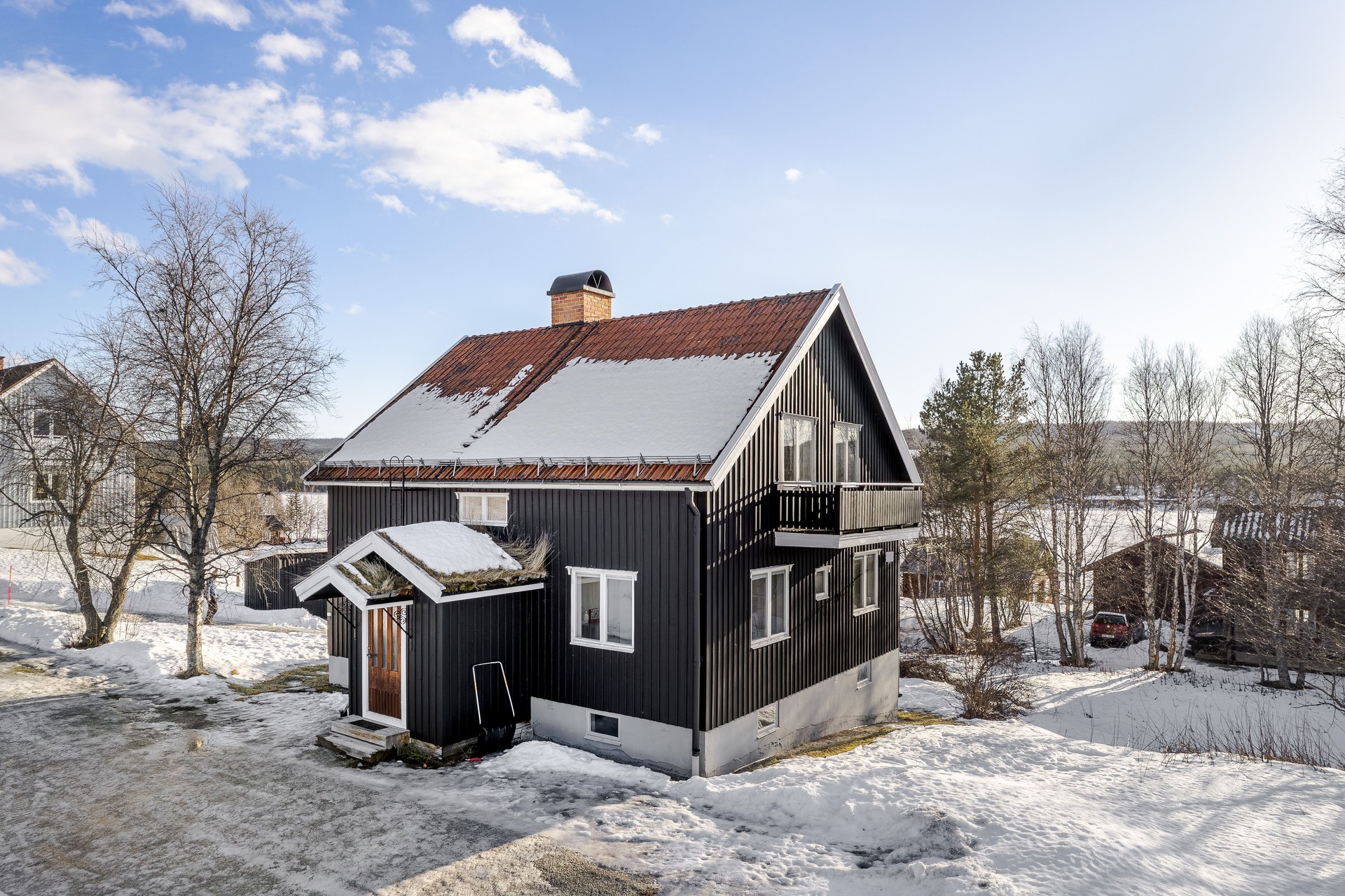 Riktigt charmig 50-tals villa i 1 ½-plan med källare, gäststuga och två förrådsbyggnader! Precis när ni kommer in i Funäsdalen längs Svegsvägen, finns det här fina boendet med hela 187 kvadratmeter boarea och därtill 33 kvadratmeter biarea. Ett riktigt hem med stora ytor, många sovrum och badrum på varje våningsplan. År 2011 gjordes en tillbyggnad på huset med hallrum som tre trappsteg upp leder till entréplanet med genomgång mellan kök, matsal och vardagsrum och en murad öppen spis. På samma våningsplan finns även ett stort sovrum och badrum med wc, dusch och handfat. Den fint bevarade 50-60-talsstilen gör sig bra med husets karaktär och alla rum på entréplanet har ljusinsläpp i två väderstreck. En trappa upp, finns fyra väl tilltagna sovrum med gemensam hall/trapphus och ett helkaklat badrum med wc, dusch och handfat. Ett av sovrummen har egen balkong med vy mot Funäsdalsberget och Skarvarna i väster. Dubbelsäng ryms i alla sovrum och ett flertal garderober. Planlösningen med fyra av fem sovrum här uppe, är också väldigt praktiskt. I hallen, på entréplan finns en trappa ner till källarplanet. Direkt till vänster i källarplanet finns ett stort badrum med relax, bastu med helglasad vägg, dusch, wc och handfat med kommod samt tvättmaskin. Alla badrum renoverades 2010 och är riktigt fina. Till höger om trappan finns ett stort rum med skifferstenar på golv. Rummet används idag som förråd och vallarum, men det här rummet har potentialen att vara en perfekt matkällare, framtida vinkällare eller en kombination av flera saker samtidigt. I ett annat rum finns en stor hall/groventré där även husets bergvärmepanna och ackumulatortank finns installerad. Den perfekta entrén efter dagar i skidbacken med pjäxor och vinterkläder som behöver torkas. Vägg i vägg med groventrén finns ett större förrådsrum och dessutom ett förråd under trappan till källarvåningen. Huset har med andra ord generösa utrymmen som kan användas på olika sätt! Tomten är stor med hela 3 820 kvadratmeter. På fastigheten finns totalt fyra byggnader och 2011 byggdes en gäststuga med ca 20 kvadratmeter boarea som varit ett eftertraktat uthyrningsboende för veckouthyrning de senaste åren. Den lilla stugan med ett fint torvtak har ett kombinerat rum med sängar, soffa, matbord och köksdel samt ett badrum med dusch, wc och handfat. Utanför finns ett altandäck med soligt, rofyllt söderläge mot Funäsdalssjön. Intill gäststugan finns en förrådsbyggnad som fungerar bra som förråd för dem som hyr gäststugan. Annars lika bra som t. ex. vedbod. I den nedre delen av fastigheten står en större förrådsbyggnad, från 70-talet. Perfekt för förvaring av både skotrar, gräsklippare och saker som kan stå kallt, men torrt under alla årstider. Sammanfattningsvis är det här ett boende med bra läge i Funäsdalen med gångavstånd till både skola, butiker, restauranger och allt byn har att erbjuda. Ett hem som passar för många, och som har bra komplementbyggnader för olika ändamål. Välkommen att boka en tid för visning!