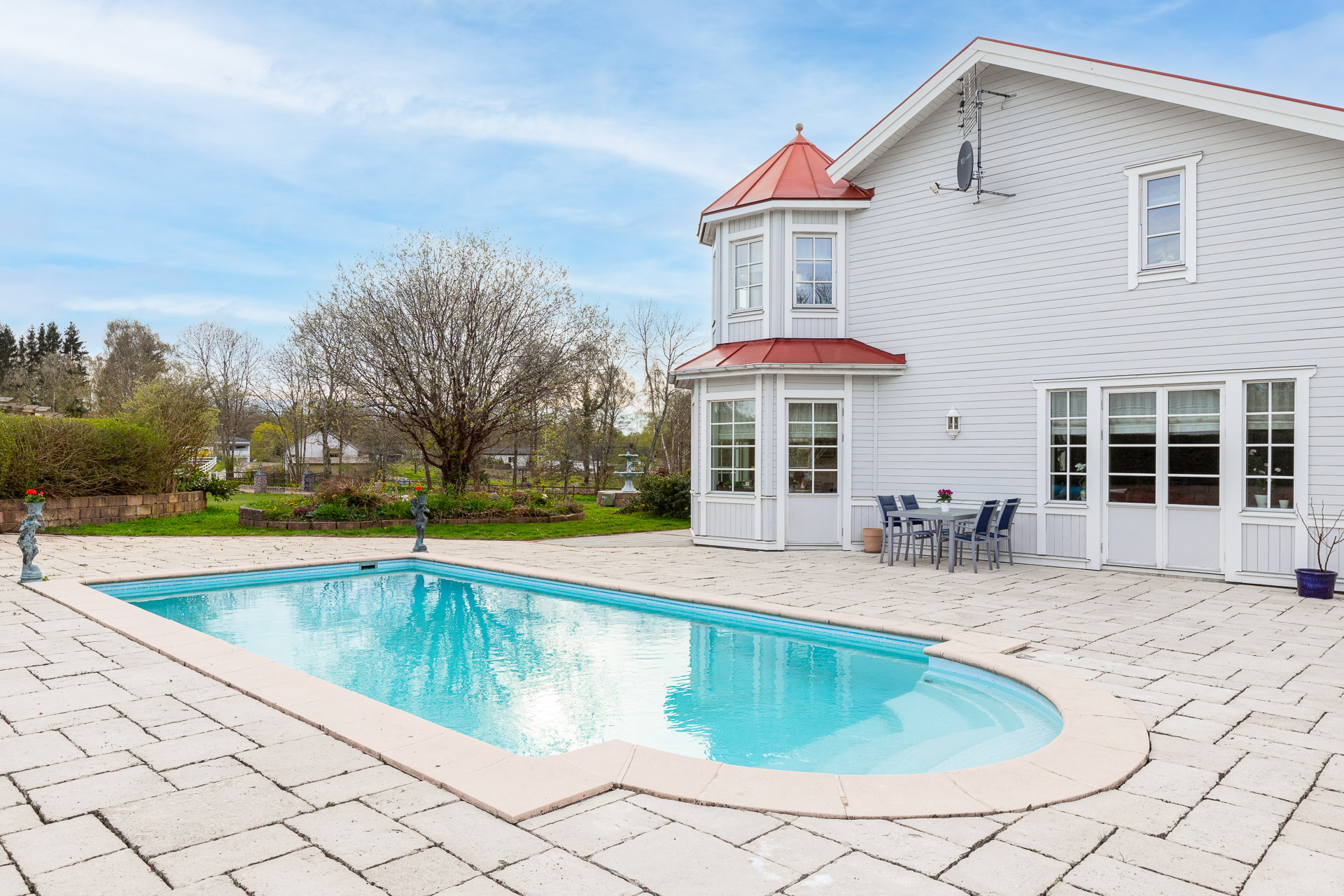 Pool / stenläggning och boningshuset