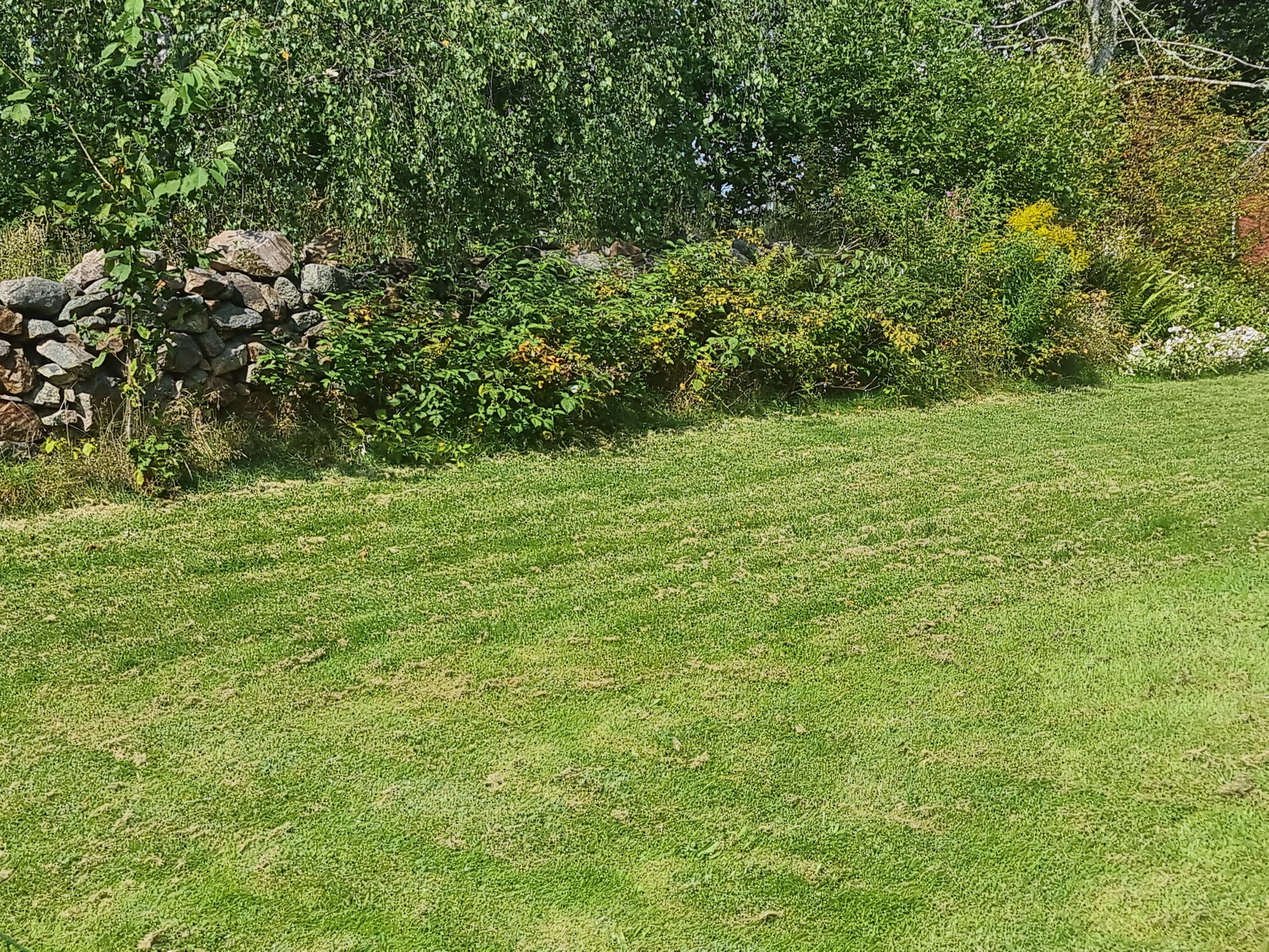 Stor tomt (2 fastigheter) med härliga ytor odlingar, lek och spel. En mycket fin stenmur finns på 2 av fastigheternas sidor.