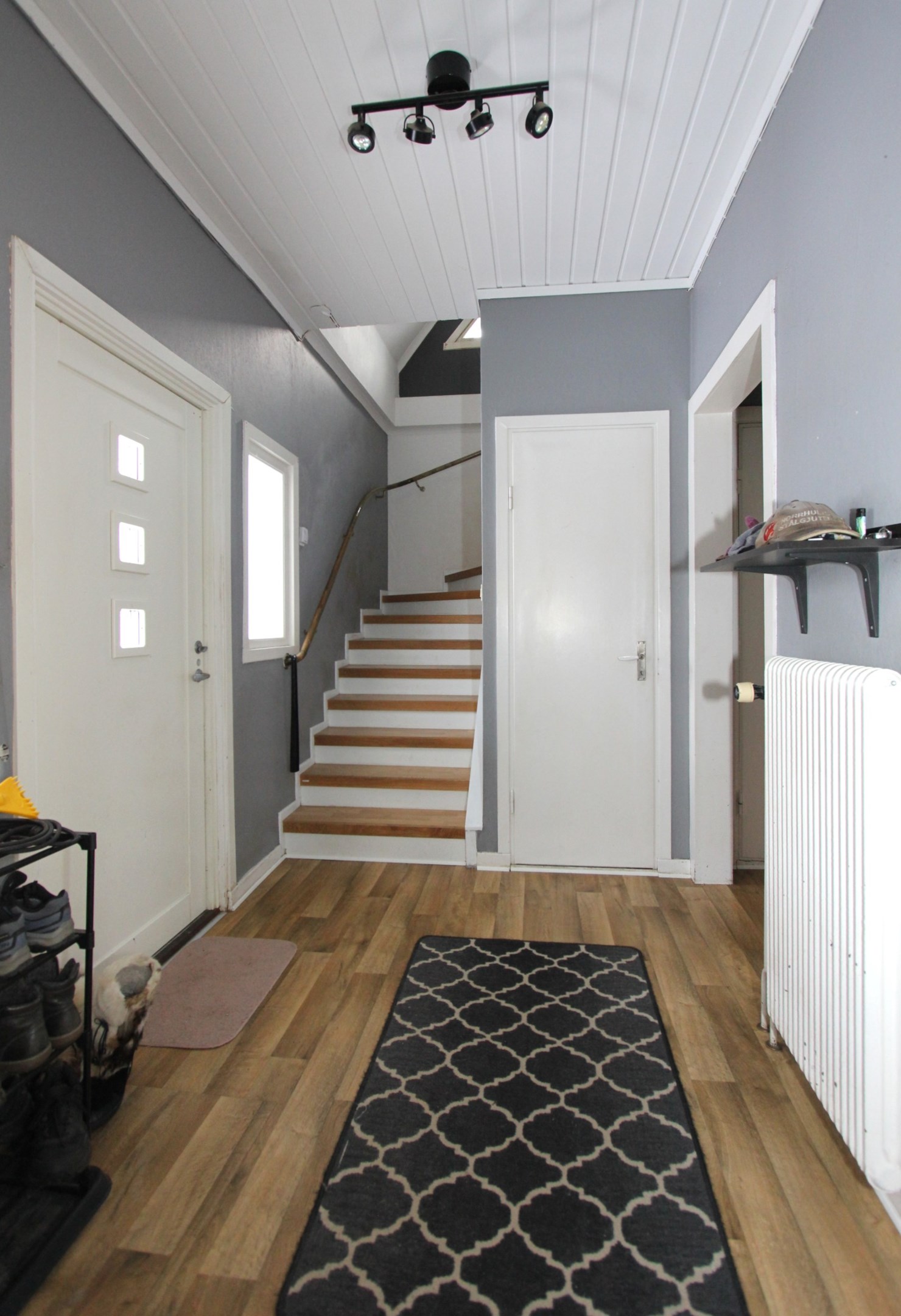 I huset finner du mysiga rum renoverade med trevliga material som skapar en varm och hemtrevlig atmosfär. Det trivsamma köket har direkt utgång till den stora altanen, där du kan njuta av solens strålar hela eftermiddagen och kvällen. På det nedre planet finner vi vardagsrummet med den härliga Jötulkaminen att samlas kring, 1 sovrum, wc och ett mysigt kök. På det övre planet finner vi 2 sovrum- det ena med 2 rymliga kattvindar, möblerbar hall samt badrum. Källaren har bra förrådsutrymmen samt pannrum och tvättstuga. En överbyggd veranda vid entrén erbjuder en perfekt plats för avkoppling och sociala stunder, oavsett väder. På baksidan kan man njuta av solen hela eftermiddagen och kvällen på den renoverade och utbyggda altanen. Kanalplasttak på delen utanför köket och en öppen del några trappsteg ner.