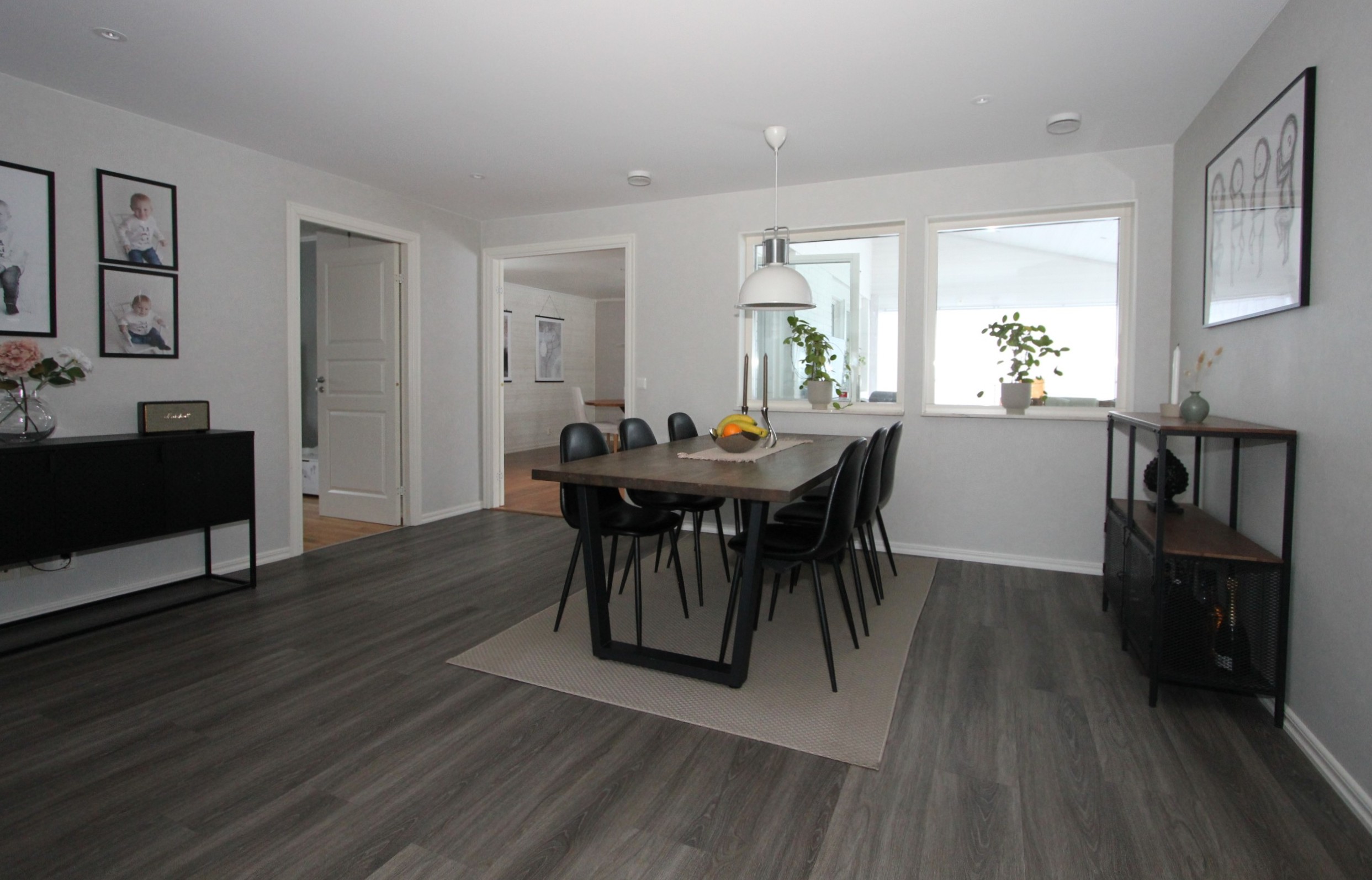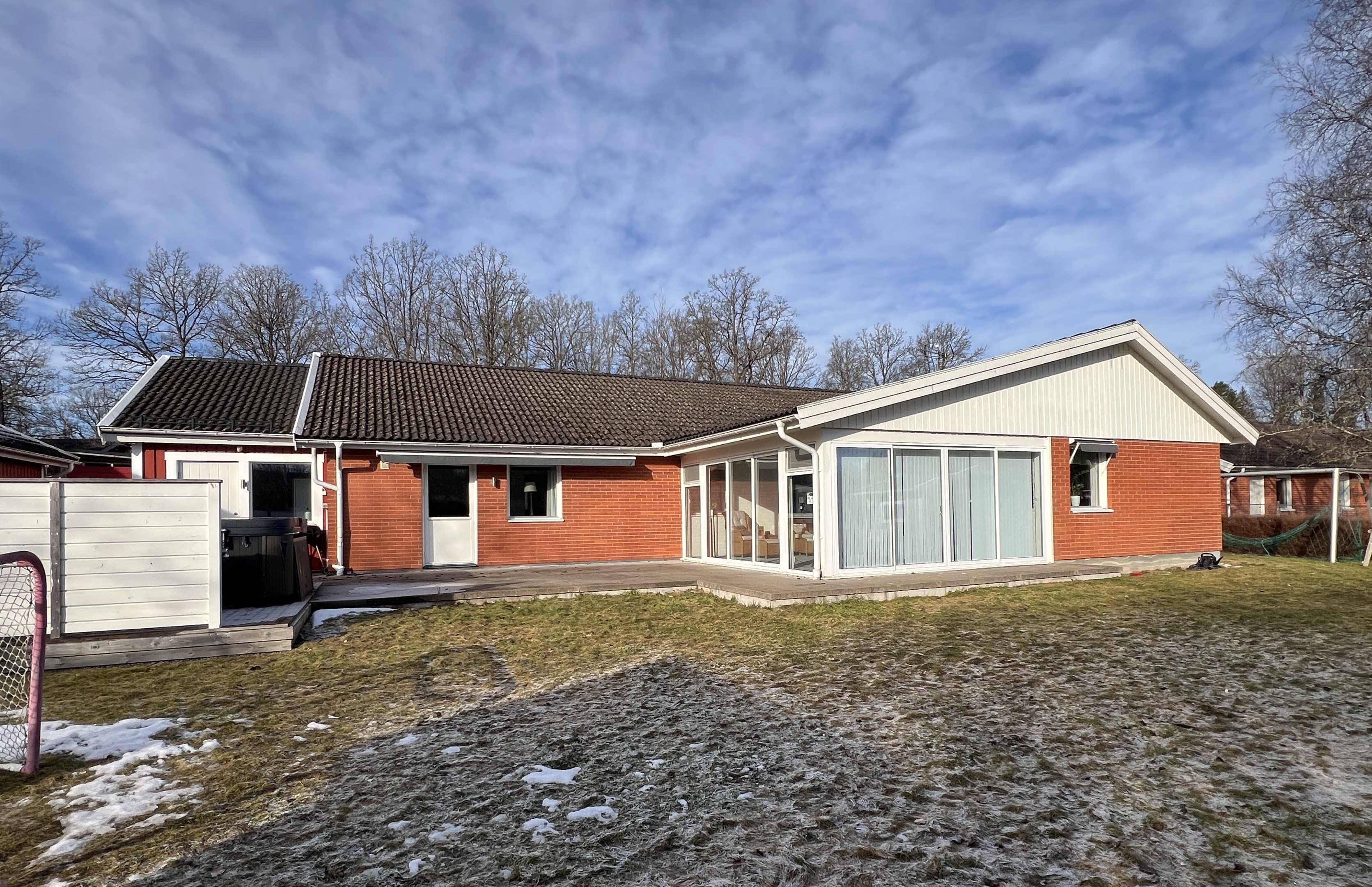 Välkommen till denna enplansvilla i toppskick, belägen i ett utmärkt läge nära centrum, förskola och natursköna områden. Renoverad under årens lopp med precision. Här möts genomtänkt arkitektur och moderna lösningar i en bostad där varje kvadratmeter är utformad för att höja livskvalitén. Tillbyggd 2010 och som nu erbjuder hela 168 kvm med sju rum och kök, varav fem bra sovrum, vilket gör den perfekt för familjelivet. Villan är lätt att bo i. Sovrum och badrum på två håll och sociala umgängesytor med kök, matrum och vardagsrum i mitten. Inredningen är genomgående av högklassiga material, med vackra parketter i de flesta rum som bidrar till en stilren och harmonisk känsla. Det nyrenoverade köket och badrummet i genomtänkt vacker design och funktionalitet. Det påkostade köket är bostadens naturliga mittpunkt blir en plats skapad för matglädje, umgänge och vardagslyx. Det vackra burspråket låter ljuset flöda in på ett behagligt sätt. Smakfullt i minsta vrå. Det imponerande HTH-köket i midnattssblått är både elegant och funktionellt, med mycket förvaring och arbetsyta. Köket har många finesser. En rejäl köksö där många får plats; både att fika vid och jobba på har häll med infälld fläkt. Ugnens lucka går att fälla in och överskåpens luckor öppnas uppåt - alla smarta detaljer som underlättar i köksarbetet. Och mycket förvaring - inte minst i lådorna - där ryms nämligen 2 lådor i varje! Arbetsytorna är många och med gott om plats. Köket är verkligen en social plats som samlar familj och vänner. Köket flödar samman med den nu öppnade ytan till matrum och vardagsrum skapar sociala ytor där familj och vänner kan samlas och trivas. Det stora vardagsrummet är ljust och luftigt, och luftkonditioneringssystemet i flera rum bidrar till en behaglig inomhusmiljö året runt. Bredvid ligger det inglasade uterummet med golvvärme och riktigt tak samt helt skjutbara glaspartier som öppnas mot trädgården för att skapa en sömlös övergång mellan inne och ute. Det här rummet ger verkligen hemmet ett extra rum att nyttja året om. Både entrén och groventrén erbjuder praktiska ingångar. Groventrén var tidigare tvättstuga och här finns förutom plats för klädavhängning även arbetsbänk med tvättmöjligheter och förvaring. Uteplatsen är stor och njuter av morgon- och förmiddagssol, med en betongplatta som har infälld belysning för stämningsfulla kvällar. Dessutom finns en bubbelpool (ej använd på ett tag) för avkoppling och njutning. Hela huset är utrustat med bergvärme och markiser, vilket bidrar till både energieffektivitet och komfort. Vattenburen golvvärme i hela villan. FTX luft/ventilationssystem. Markiser och fasadbelysning. Säkringar är bytta. Detta är en villa som kombinerar modern elegans med funktionalitet, perfekt för den som söker ett hem där allt är genomtänkt och av högsta kvalitet. Och så smidigt med allt på ett plan! Här behöver du inte lägga pengar på renoveringar - bara att flytta in direkt! Missa inte chansen att göra detta till ditt nya hem! Välkommen på visning!
