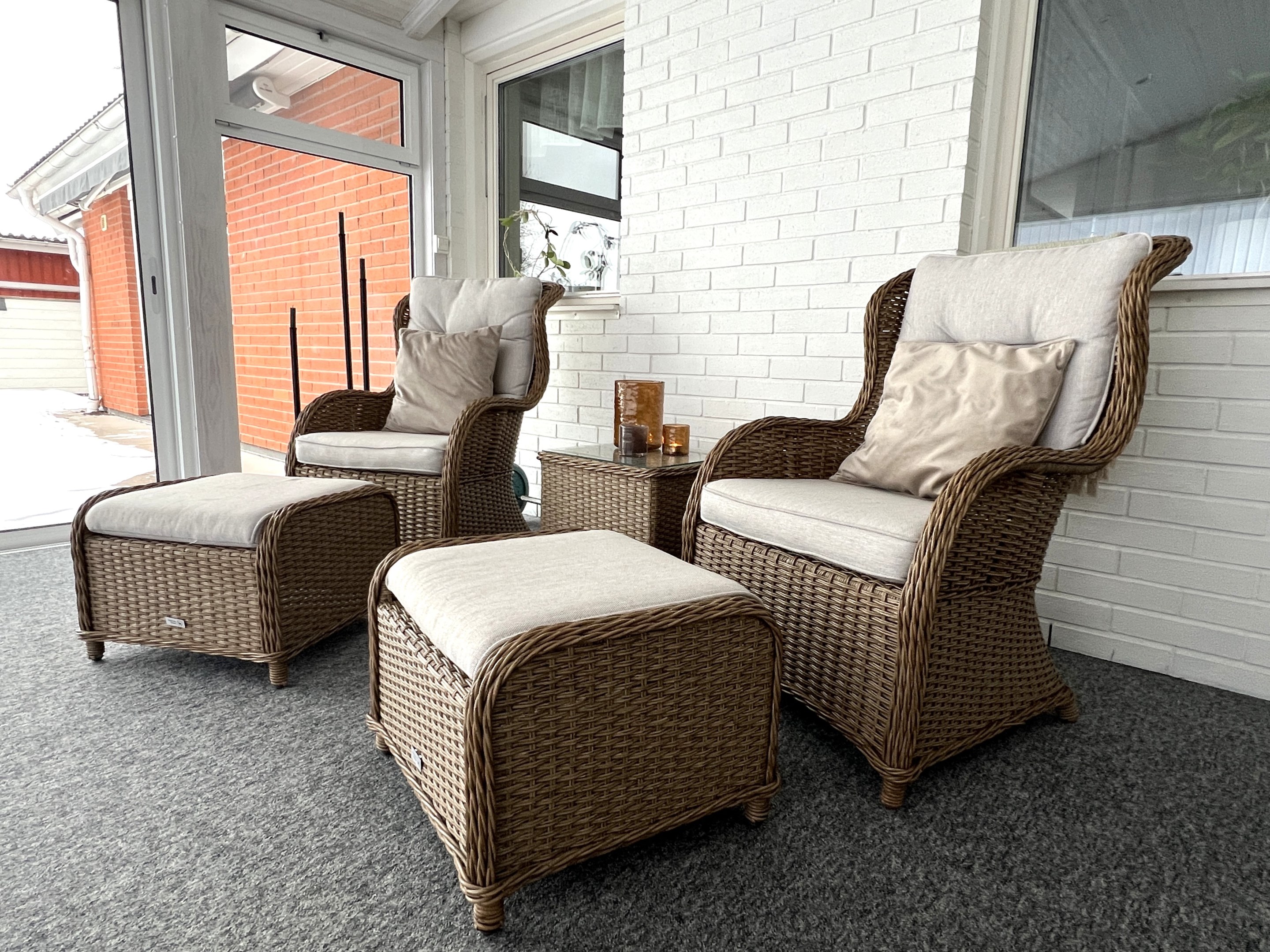 Inredningen är genomgående av högklassiga material, med vackra parketter i de flesta rum som bidrar till en stilren och harmonisk känsla. Nyrenoverat kök och badrum i genomtänkt vacker design och funktionalitet. Smakfullt i minsta vrå. Det imponerande HTH-köket i midnattssblått är både elegant och funktionellt, med mycket förvaring och arbetsyta. Köket har många finesser. En rejäl köksö där många får plats; både att fika vid och jobba på har häll med infälld fläkt. Ugnens lucka går att fälla in och överskåpens luckor öppnas uppåt - alla smarta detaljer som underlättar i köksarbetet. Och mycket förvaring - inte minst i lådorna - där ryms nämligen 2 lådor i varje! Arbetsytorna är många och med gott om plats. Köket är verkligen en social plats som samlar familj och vänner. Köket flödar samman med den nu öppnade ytan till matrum och vardagsrum skapar sociala ytor där familj och vänner kan samlas och trivas. Det stora vardagsrummet är ljust och luftigt, och luftkonditioneringssystemet i flera rum bidrar till en behaglig inomhusmiljö året runt. Bredvid ligger det inglasade "uterummet" med golvvärme och riktigt tak samt helt skjutbara glaspartier som öppnas mot trädgården för att skapa en sömlös övergång mellan inne och ute. Det här rummet ger verkligen hemmet ett extra rum att nyttja året om och har blivit det andra vardagsrummet. Både entrén och groventrén erbjuder praktiska ingångar. Groventrén var tidigare tvättstuga och här finns förutom plats för klädavhängning även arbetsbänk med tvättmöjligheter och förvaring.