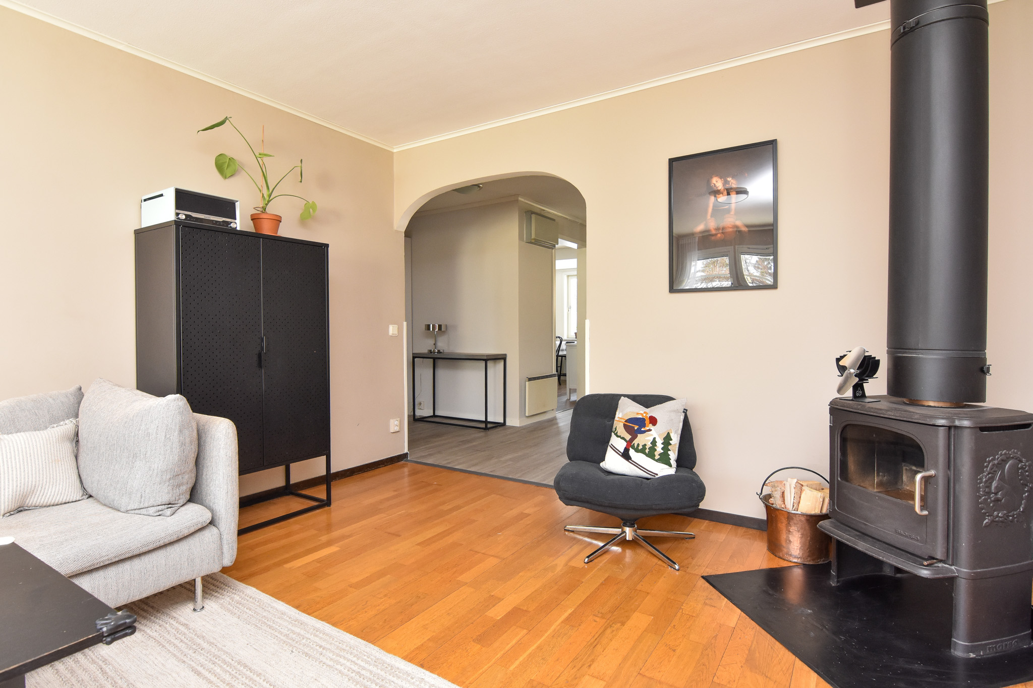 Rakt fram från hallen kommer finner du husets vardagsrum. Rummet har en härligt värmande kamin, här finns plats för en större soffgrupp och här finner du även utgång till husets baksida med altan.
