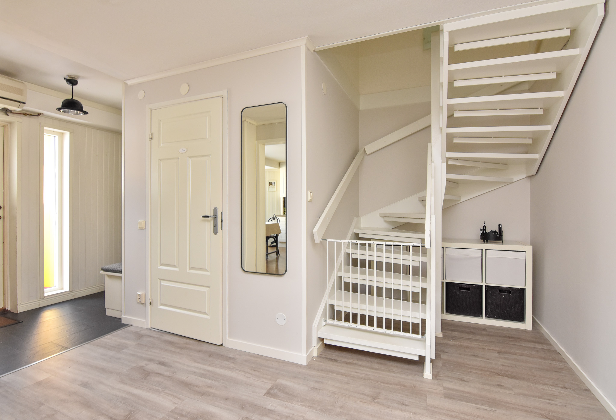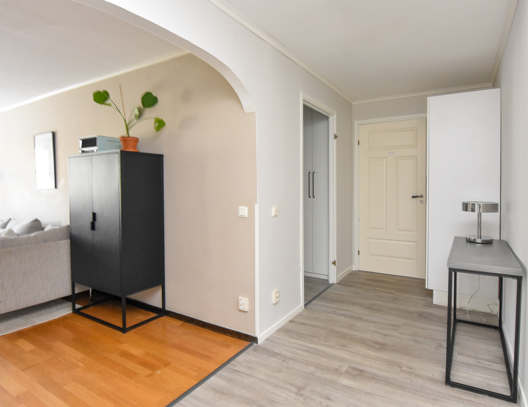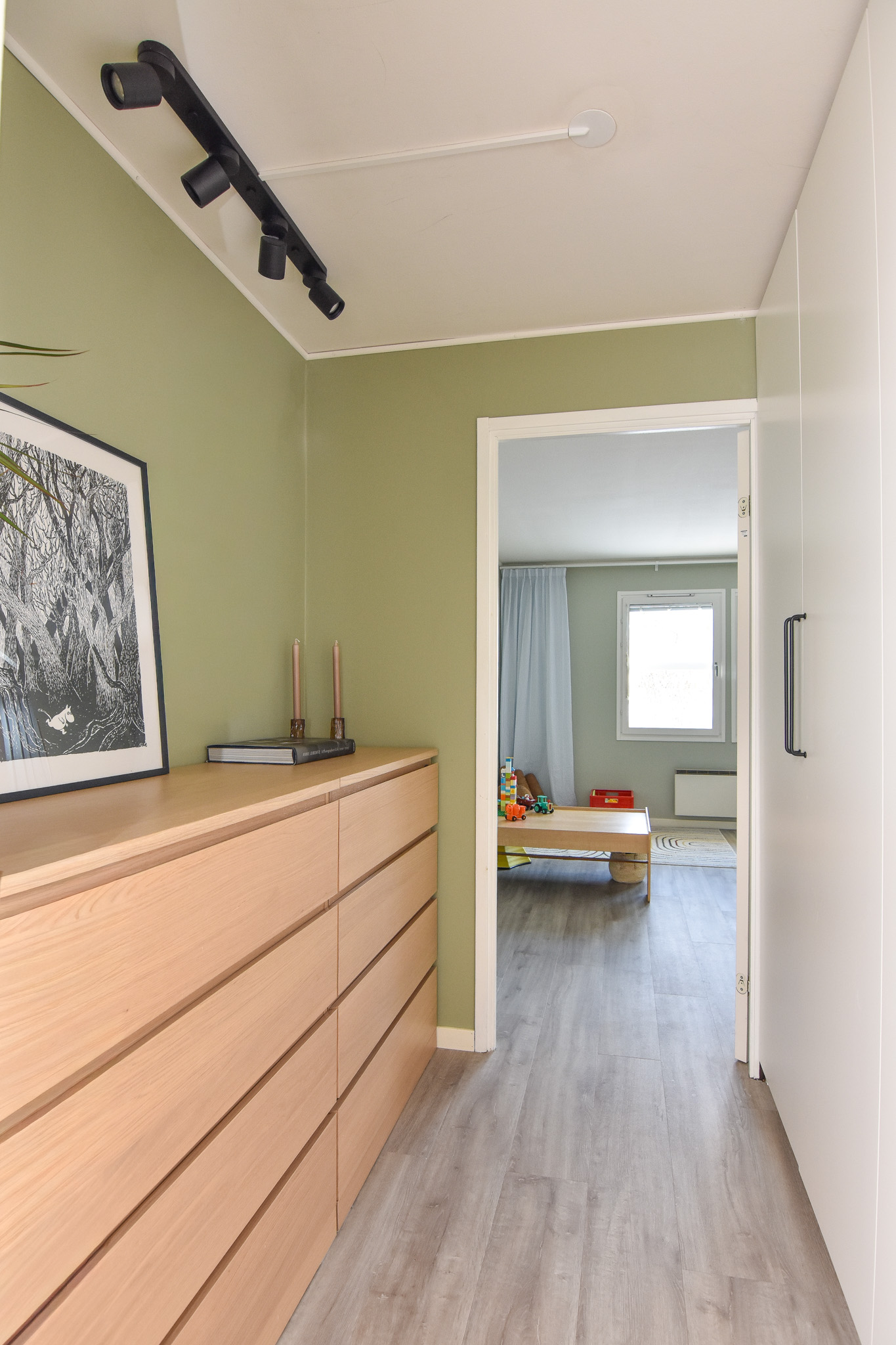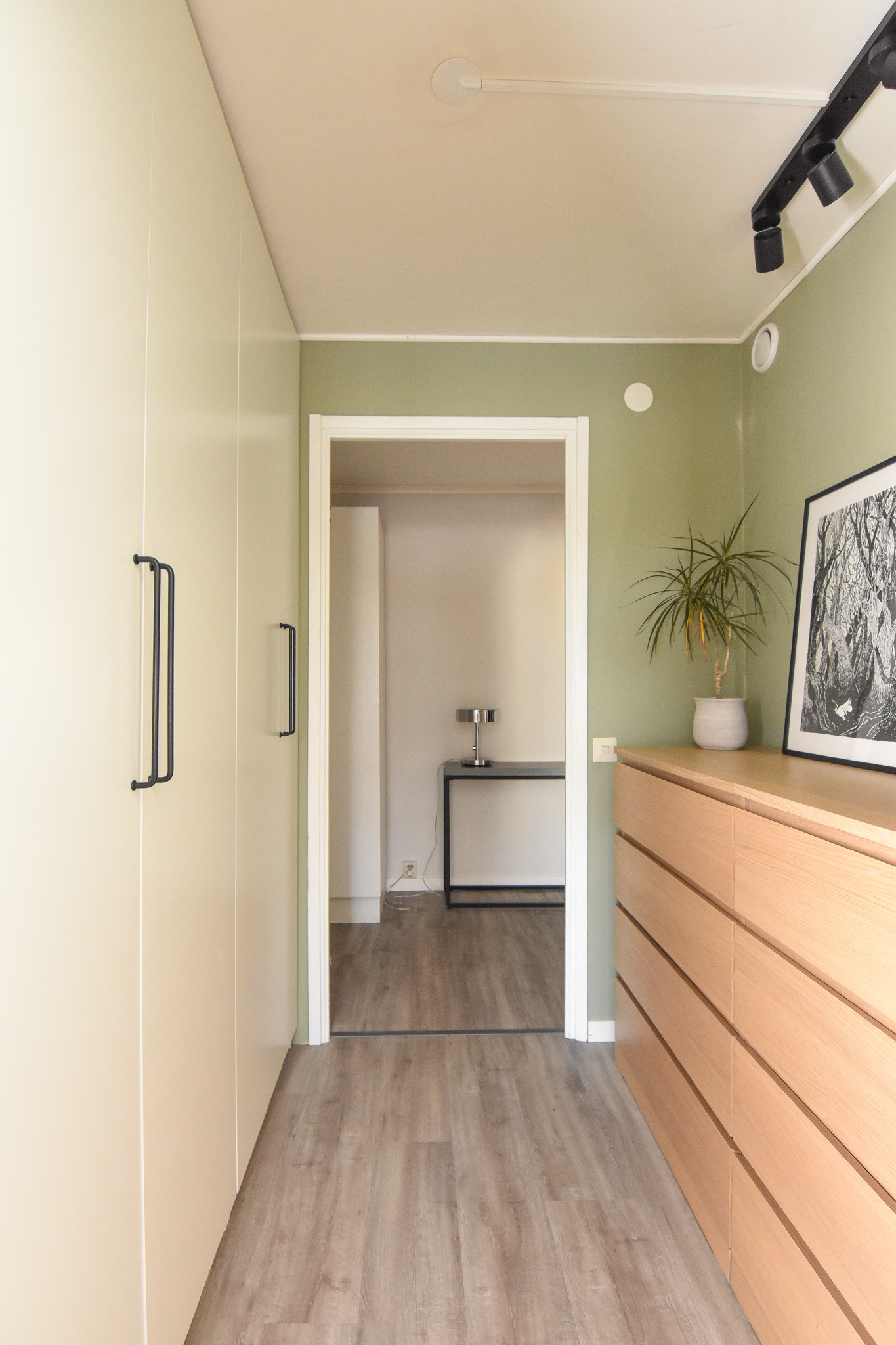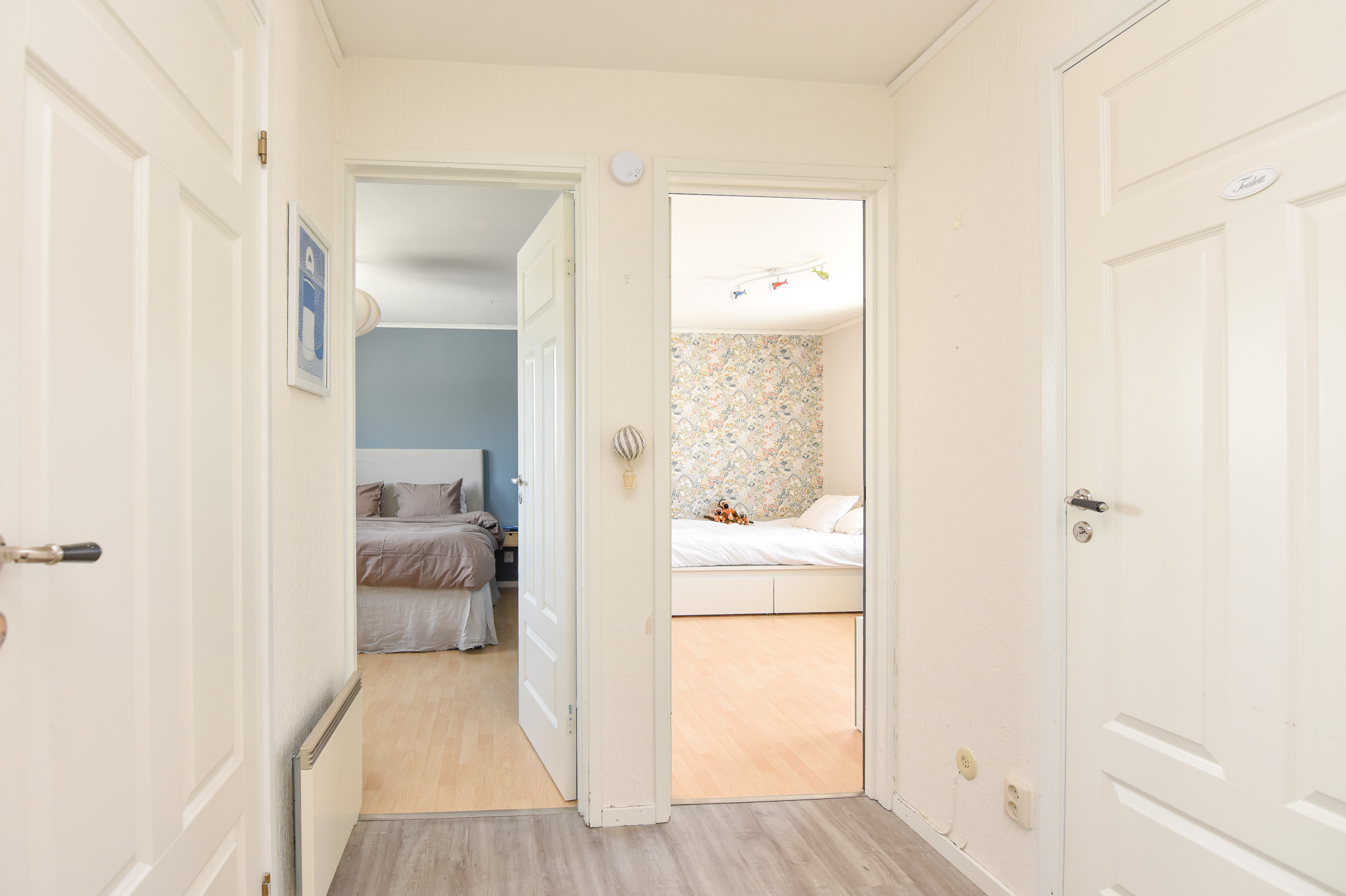 En genomgångshall med plats för byrå. Här finns även en större dubbelgarderob.