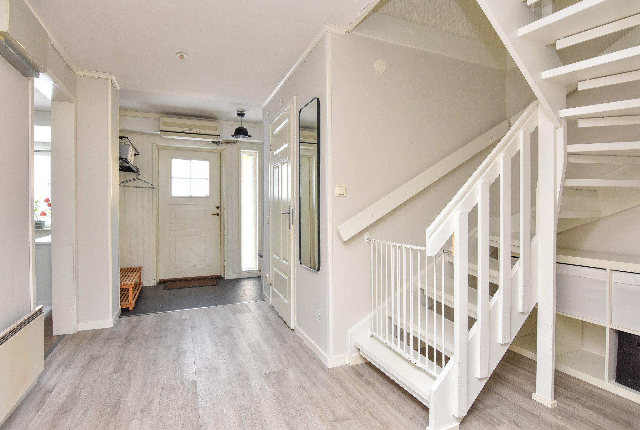 På Grundviksvägen 67 får du alla fördelar med ett eget hus men i radhusformat – utan månadsavgift och med ett mer lättskött boende. Detta radhus i två plan erbjuder välplanerade ytor, dubbla toaletter, garageplats samt uteplatser på både fram- och baksida. Här kan du njuta året runt med gott om plats för hela familjen. Köket har generöst med utrymme för matplats, och från vardagsrummet når du altanen som leder vidare ut till trädgården – perfekta ytor för sociala tillställningar! Här får du ett smidigt och bekvämt boende, varmt välkomna med ert intresse redan idag!