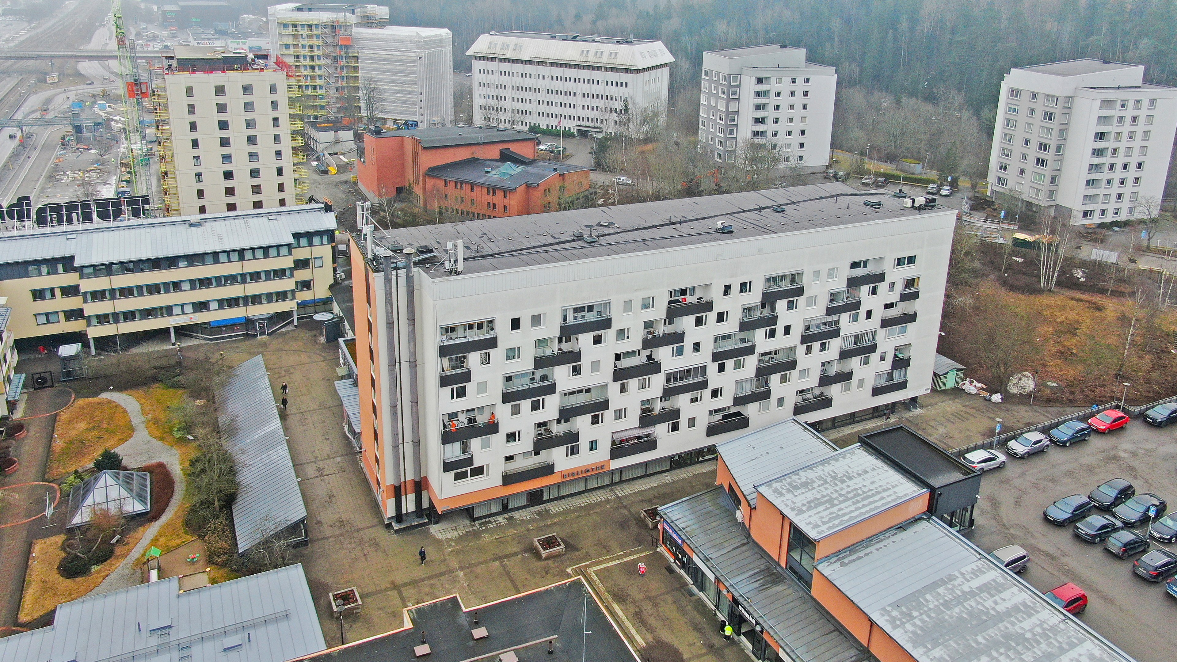 Välplanerad etagélägenhet med två inglasade balkonger, helkaklad dusch/WC/tvätt och stilrent kök