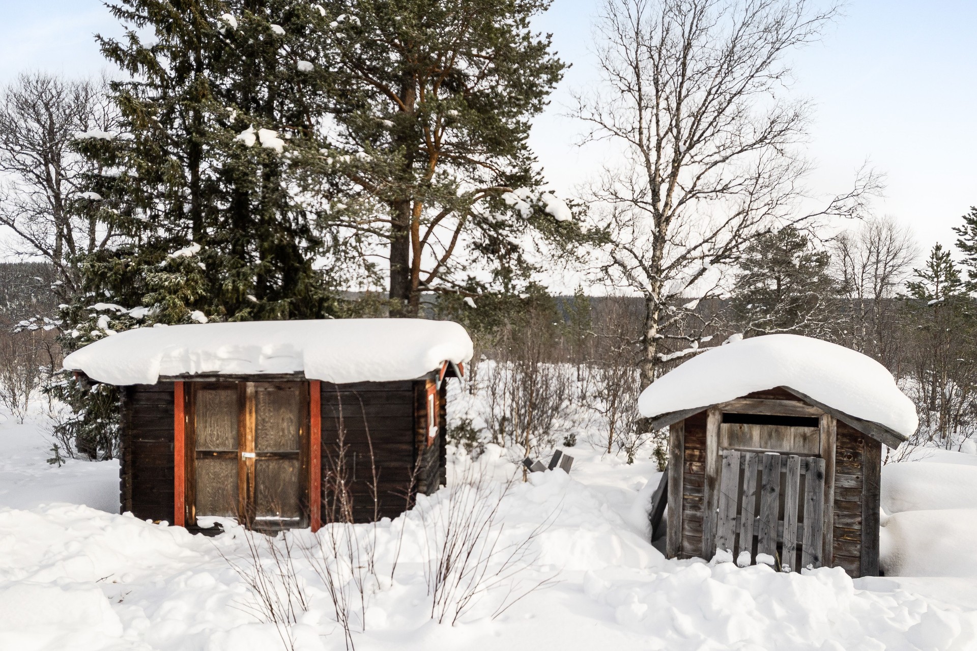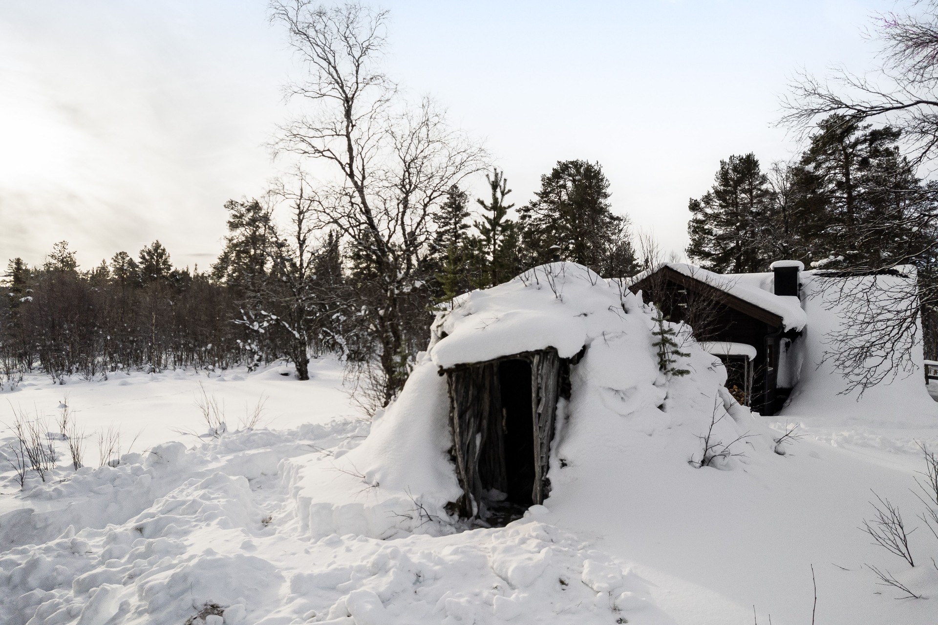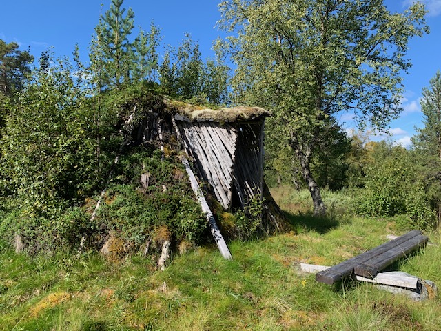 På tomten finns en vacker torvkåta, på syd-samiska "gåetie". Kåtan byggdes som första byggnad på 60-talet och är trots sin ålder välbevarad i ursprungligt skick. I kåtan finns jordgolv, vedkamin och bord med sittbänk vid fönstret. Oisolerad förrådsbyggnad med grund av upplagda naturstenar. Fasad av planktimmer. Papptak. Mindre vedbod.