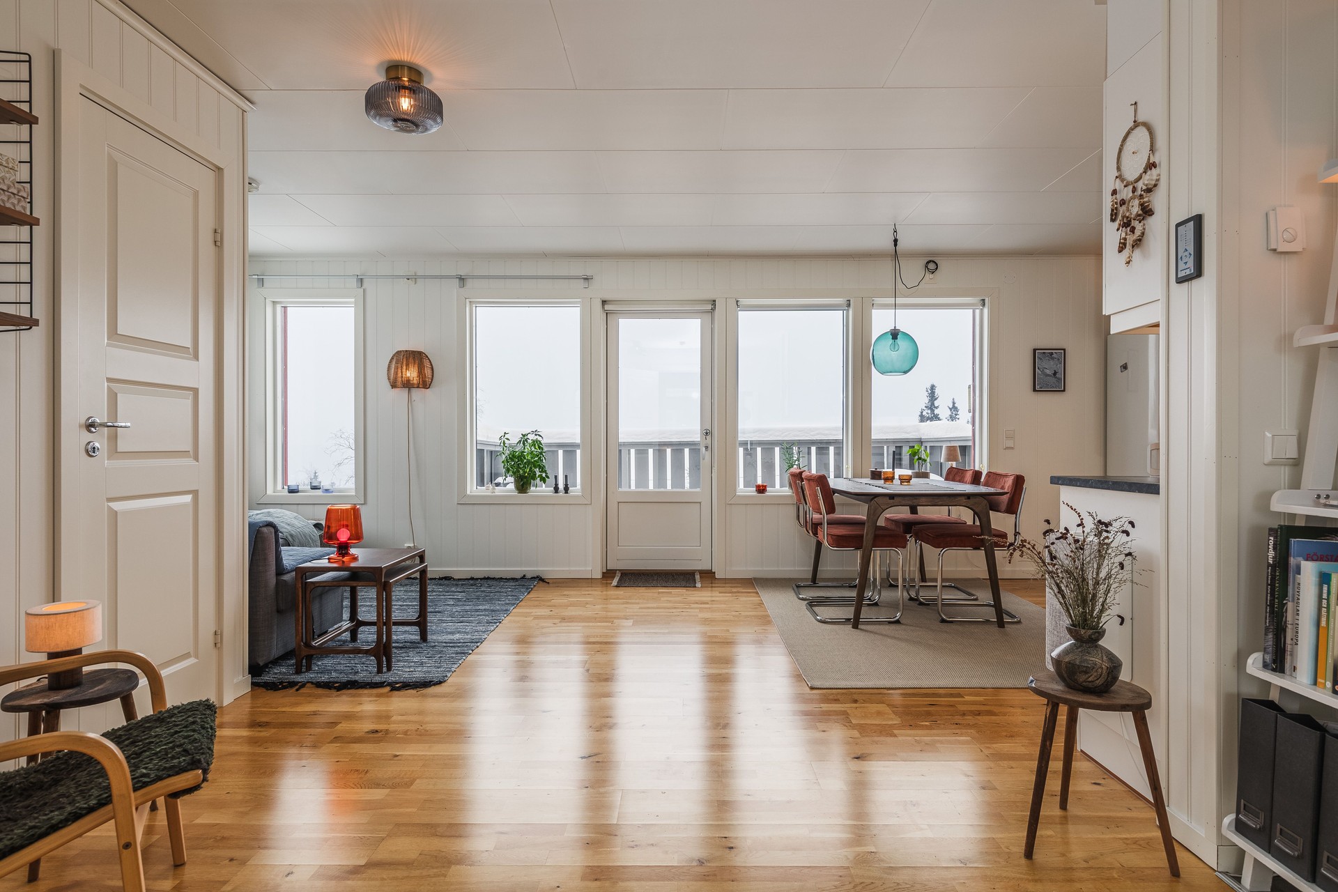 Välplanerad, stilren bostadsrätt med 58 kvadratmeter boarea på Funäsdalshöjden vid Röstberget i Funäsdalen! Det här är en härligt hörnlägenhet på andra våningen närmast idrottsplatsen, så utsikten är outtröttligt vacker (när det inte snöar ymnigt som vid fotograferingen). Vyn genom fönster och från balkong mot vackra Anåfjällen ingår i köpet. Härifrån nås Funäsdalsbergets alpina skidanläggning på några minuter till fots och Funäsfjällens spårsystem startar alldeles intill med utgångspunkt vid idrottsplatsen som sommartid erbjuder fotbollsplan och utegym. Det här är en ljus och välplanerad hörnlägenhet på övre plan med fönster i tre väderstreck. I grundutförande en 3:a, där ägaren skapat ett tredje och extra sovrum, eller en användbar "walk in closet". Lägenheten har idag tre sovrum och därtill kök, vardagsrum i öppen planlösning. Läget i ytterkant av bostadsområdet är lugnt och trivsamt med trevliga grannar. Bostaden har genomgående parkettgolv med vattenburen golvvärme och slitstark klinker på badrums- och hallgolv. Vit-, och gråmålad pärlspont på väggar. Badrummet är helkaklat i vitt och inrett med dusch, torkskåp, wc, handfat och tvättmaskin. Sovrummen, ett större med plats för dubbelsäng. Vägg i vägg finns ett sovrum med plats för enkelsäng eller våningssäng. Det tredje tänkbara sovrummet har skapats som en del av allrummet och fungerar lika bra som klädkammare. Rakt fram och till höger från hallen finns allrummet med kök med öppen planlösning. Köksdelen i vinkel är väldimensionerad med bra skåpförvaring och arbetsbänkar. Allrum och kök är ljust med fönster i två väderstreck och utgång till balkongen med vy över fjällmassiven i nordost. Precis intill entrédörren, i trapphuset så finns ett varmförråd om ca 3,5 kvm. som hör till bostadsrätten. Perfekt för förvaring av skidor, friluftsprylar och annat. Den direkta närheten till bykärnan med alla samhälleliga funktioner så som restauranger, välsorterade butiker, förskola (ca 100 meter från bostadsområdet) och aktiviteter som området erbjuder, gör tillsammans med bekvämligheten av bostadsrättsägande det här till ett utmärkt alternativ för såväl permanent- eller fritidsboende!