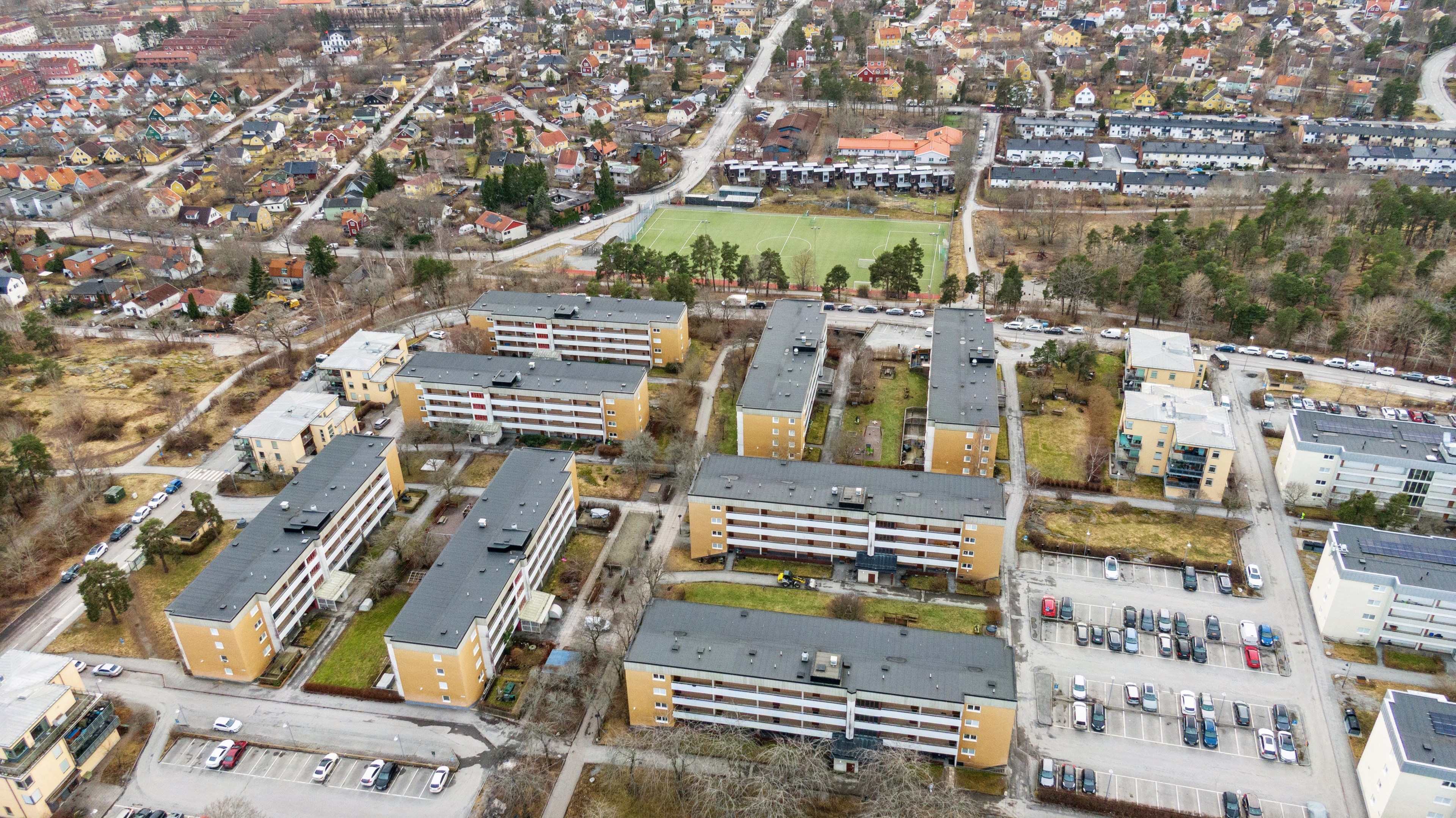 Föreningen har 101 parkeringsplatser. Gratis parkering på närliggande huvudgata.
