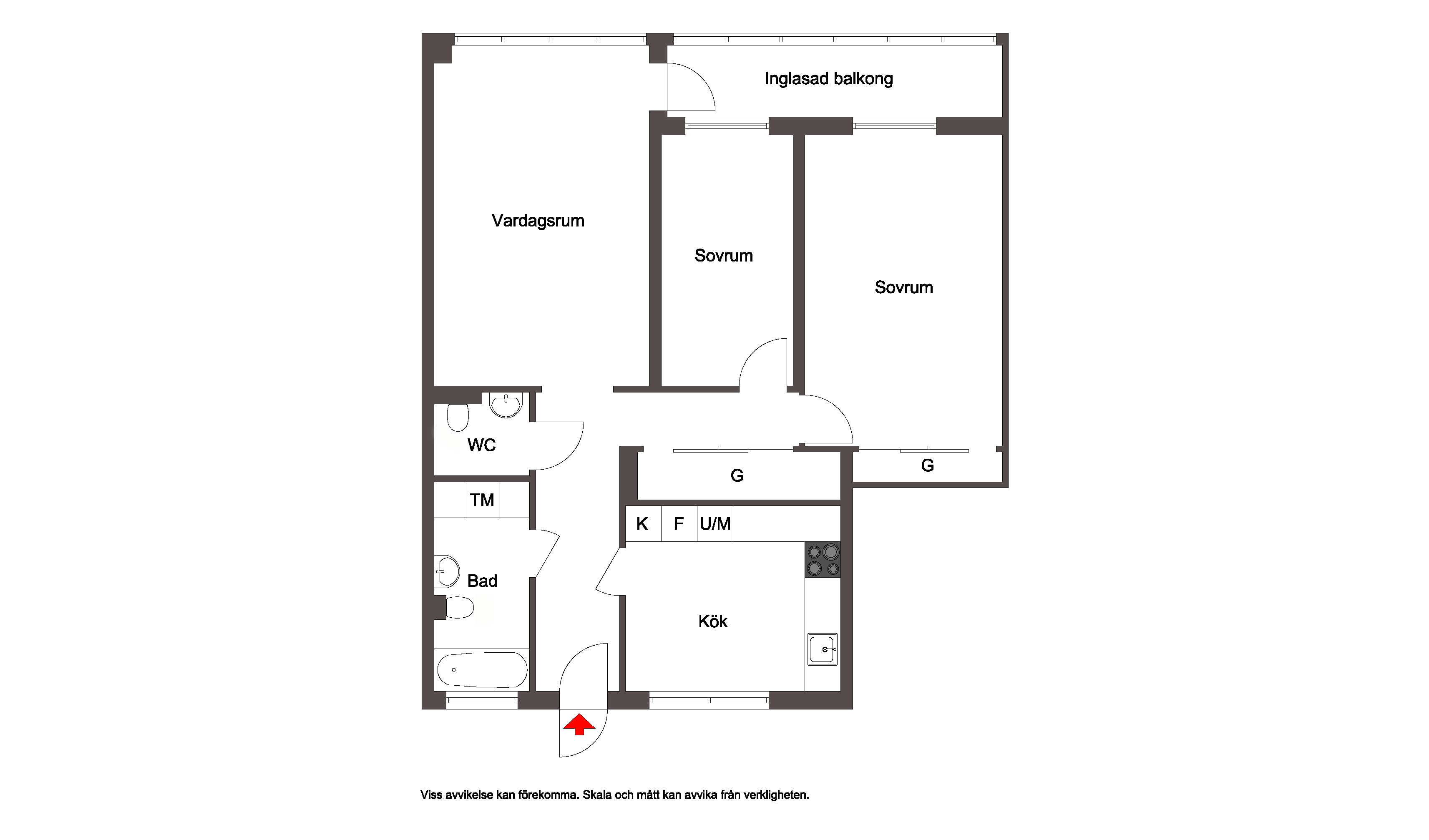 Välplanerad trea med stambytt badrum/ extra WC samt inglasad balkong