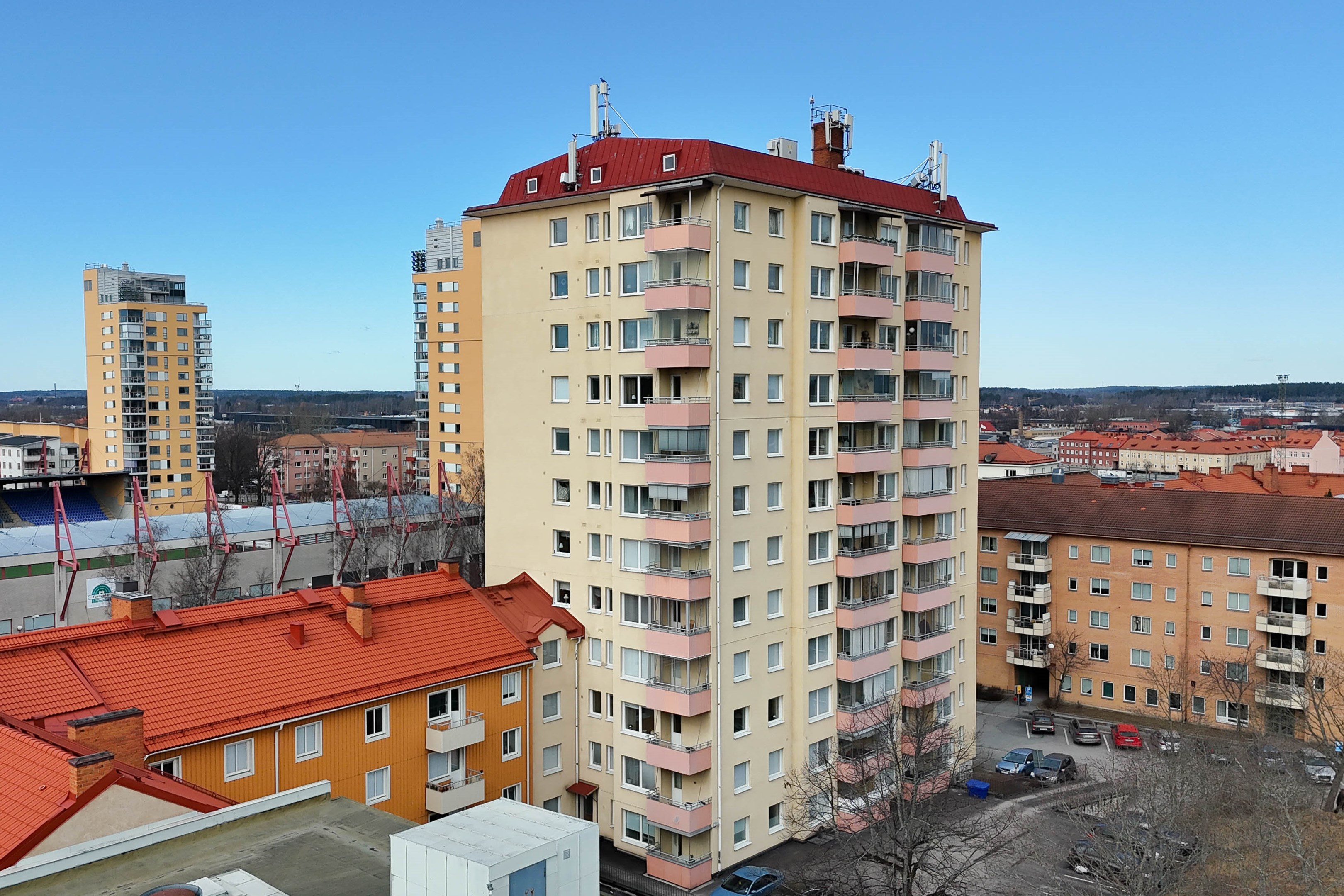 Välkommen upp till våning 10 - här presenteras en bostad som kombinerar stil, komfort och ett fantastiskt ljusinsläpp. Här erbjuds en totalrenoverad lägenhet där varje detalj är noggrant genomtänkt. Det moderna köket från Nordanro är elegant utformat och ligger i en öppen planlösning mot vardagsrummet, vilket skapar en social, luftig och inbjudande atmosfär – perfekt för både vardagsliv och umgänge. Det helkaklade badrummet håller hög standard och erbjuder dusch med stilrena vikbara glasväggar, handdukstork, spegelskåp, behaglig golvvärme, wc samt handfat med kommod som ger god förvaring. Sovrummet är generöst tilltaget och erbjuder gott om förvaring tack vare flera platsbyggda garderober. Redan i entréhallen möts du dessutom av en praktisk klädkammare som förenklar vardagen ytterligare. Genomgående präglas bostaden av ljusa, nymålade väggar och ett enhetligt parkettgolv som skapar en harmonisk och modern helhet. Det är även nydragen el samt ny elcentral. Detta är ett hem för dig som söker något utöver det vanliga – en stilren, inflyttningsklar lägenhet där det bara är att packa upp och börja trivas från första stund.