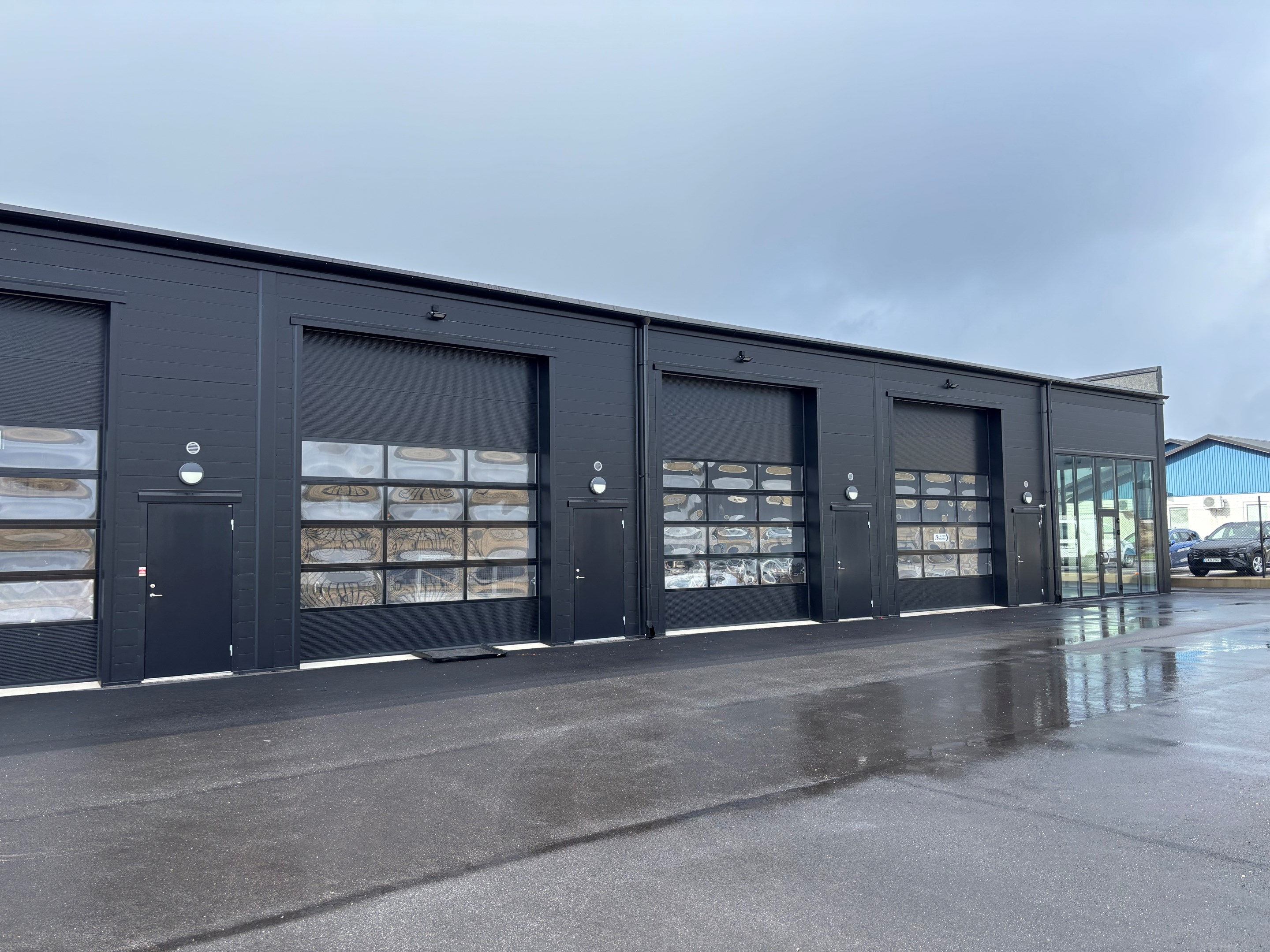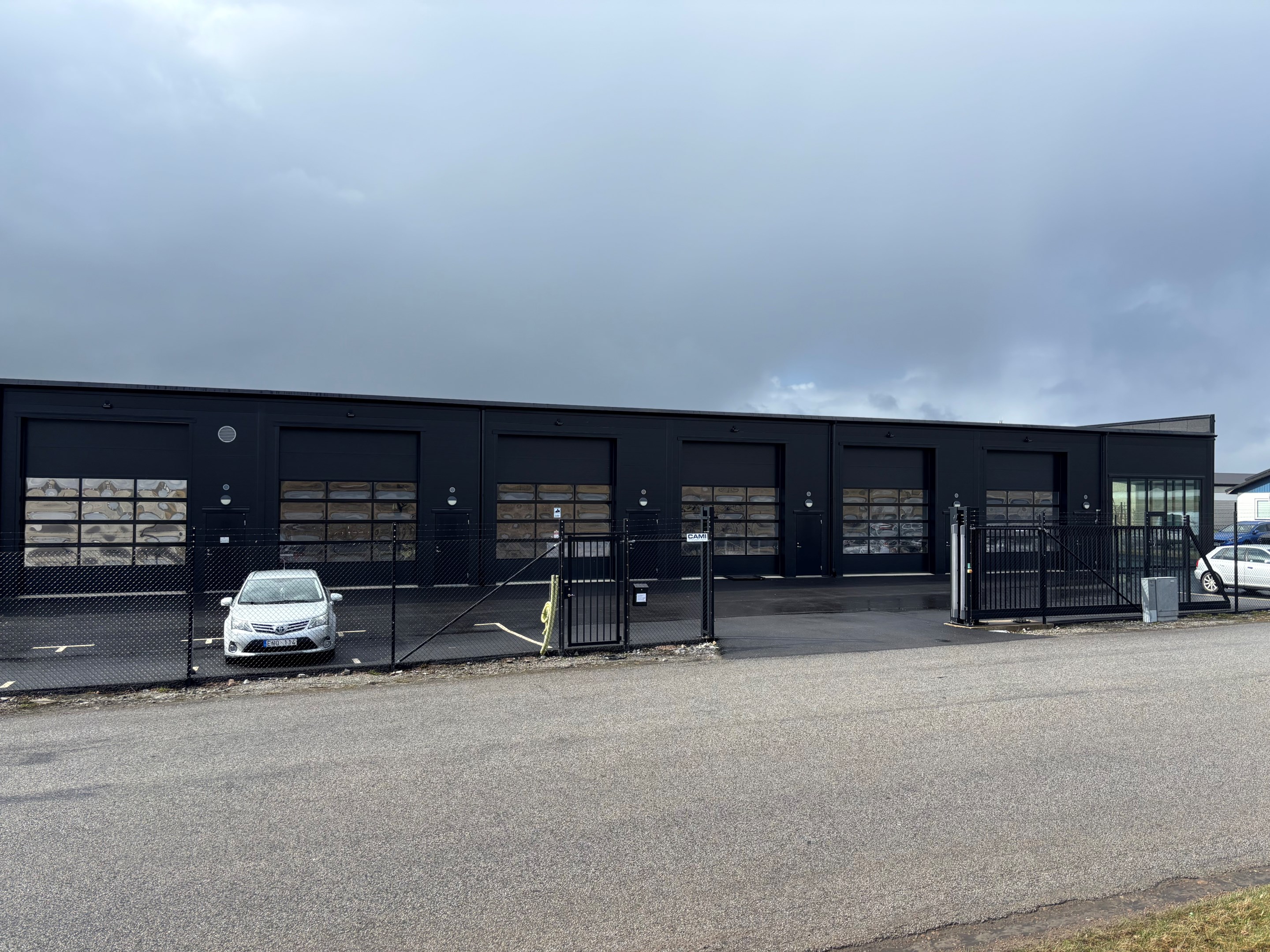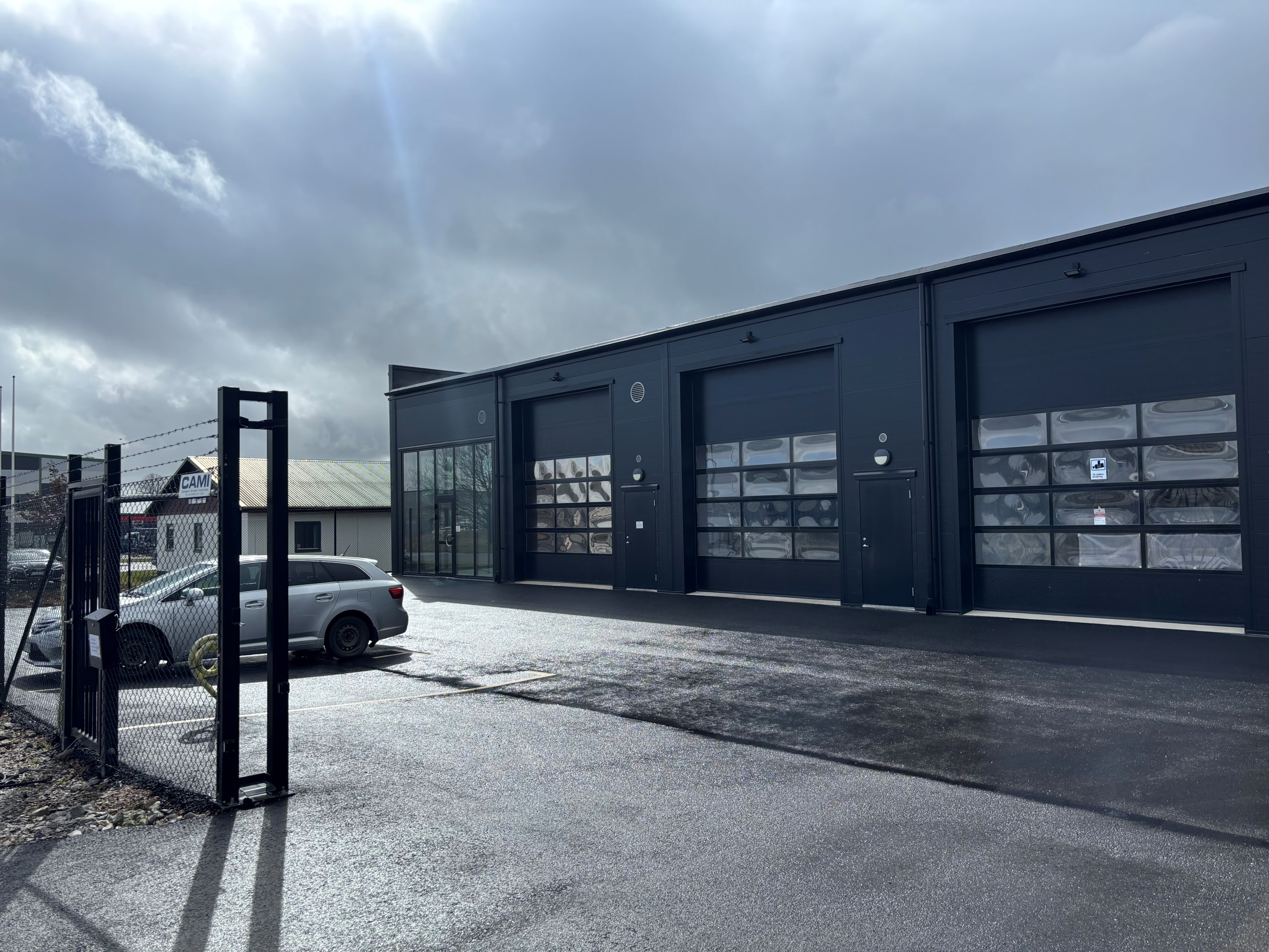 Toppmoderna lokaler på säljande läge Modern byggnad indelad i 8st lokaler. Uppförd 2023. Allt i fräsig stil där allt går genomgående i svart. Svart fasad, svarta portar, svart stängsel runt om etc. Fina helkaklade badrum. Fullt utrustade pentryn. Varje lokal är ca 100 kvm i bottenyta plus entrésolplan om ca 20 kvm där ytterfacken är något större. Alla är fullt utrustade bl a med fjärrstyrd garageport (3800 x 4500), helkaklad wc/dusch, pentry med spishäll / ugn / kyl, LED-belysning samt luftvärmepump. Lokal nr 1 och nr 8 är planerade för butiksverksamhet med betydligt större fönsterpartier. Lokal nr 2 till 7 är anpassade för kontor/lager. Fiberanslutning. Fastigheten är kringgärdad med stängsel och fjärrstyrd skjutgrind. Asfalterad yta runt byggnaden med parkeringsplatser och laddstolpar. Ring för mer information och visning.