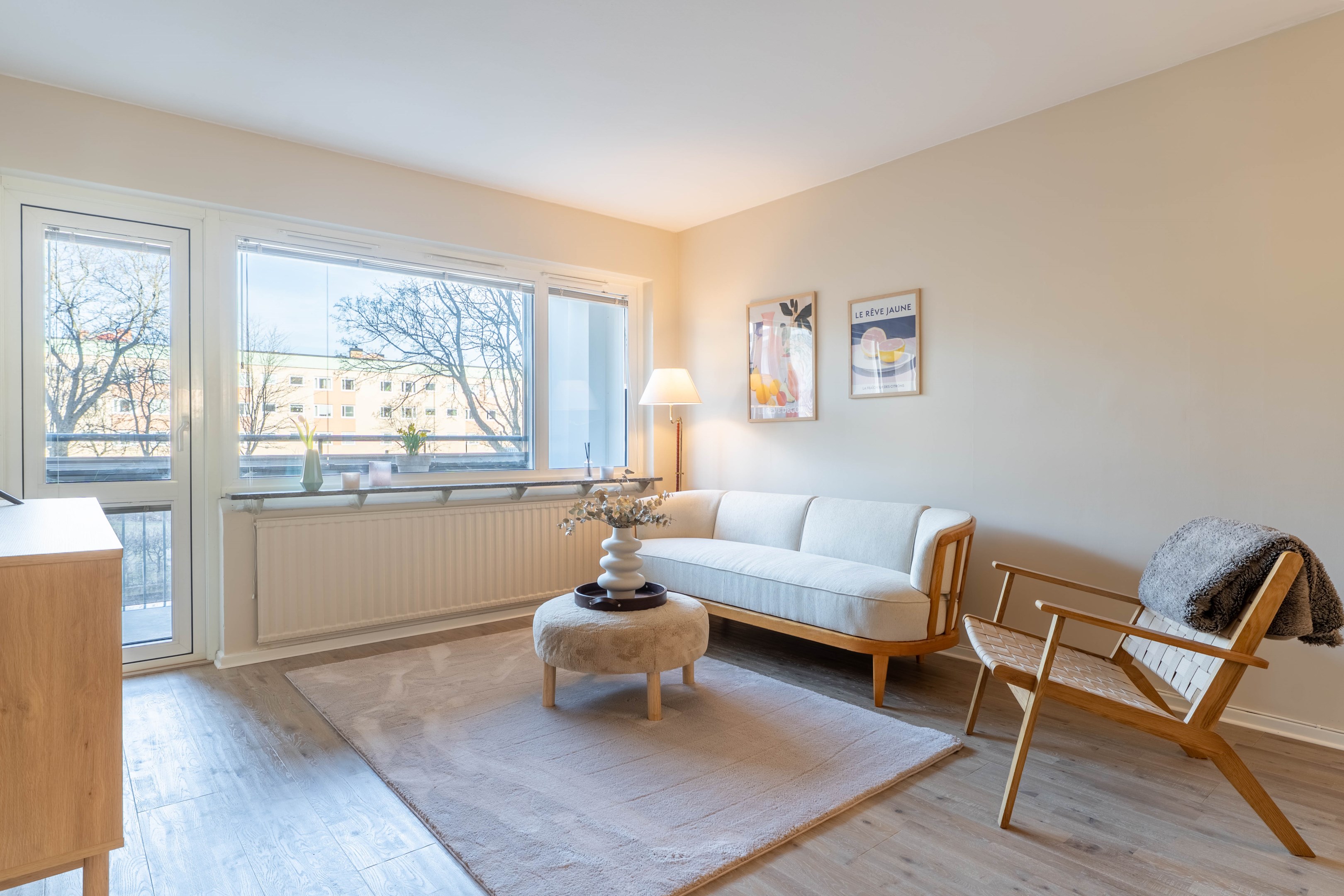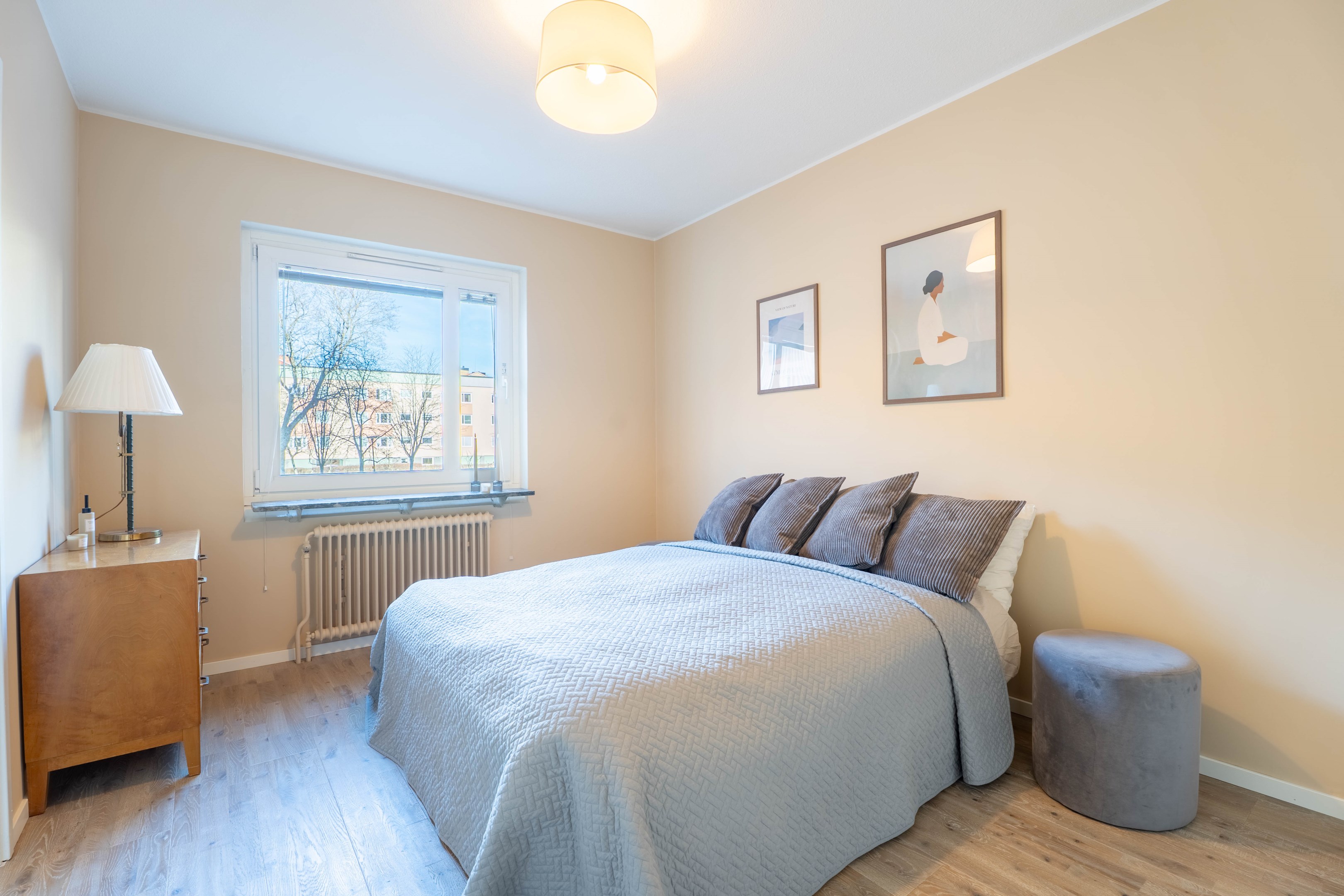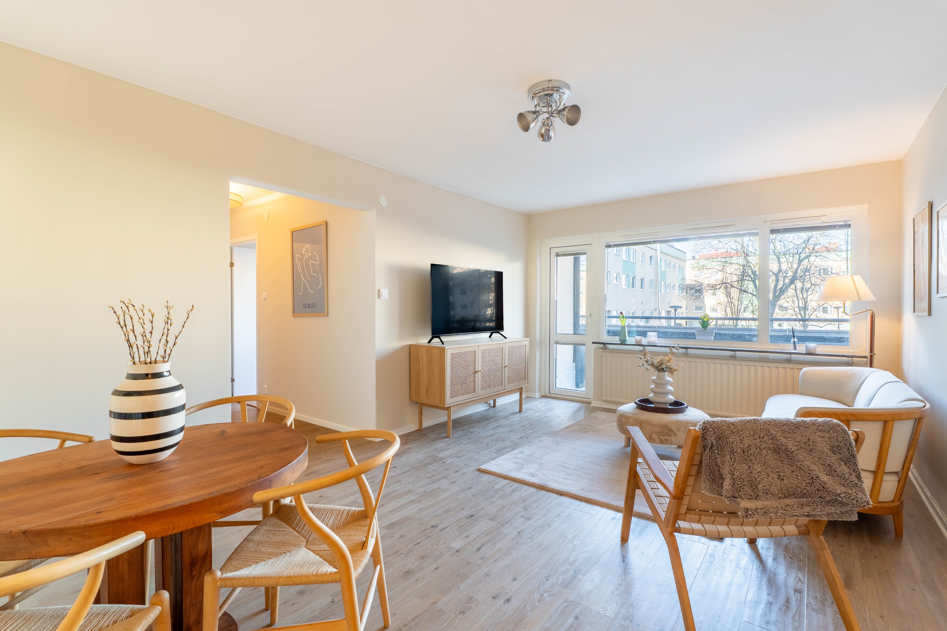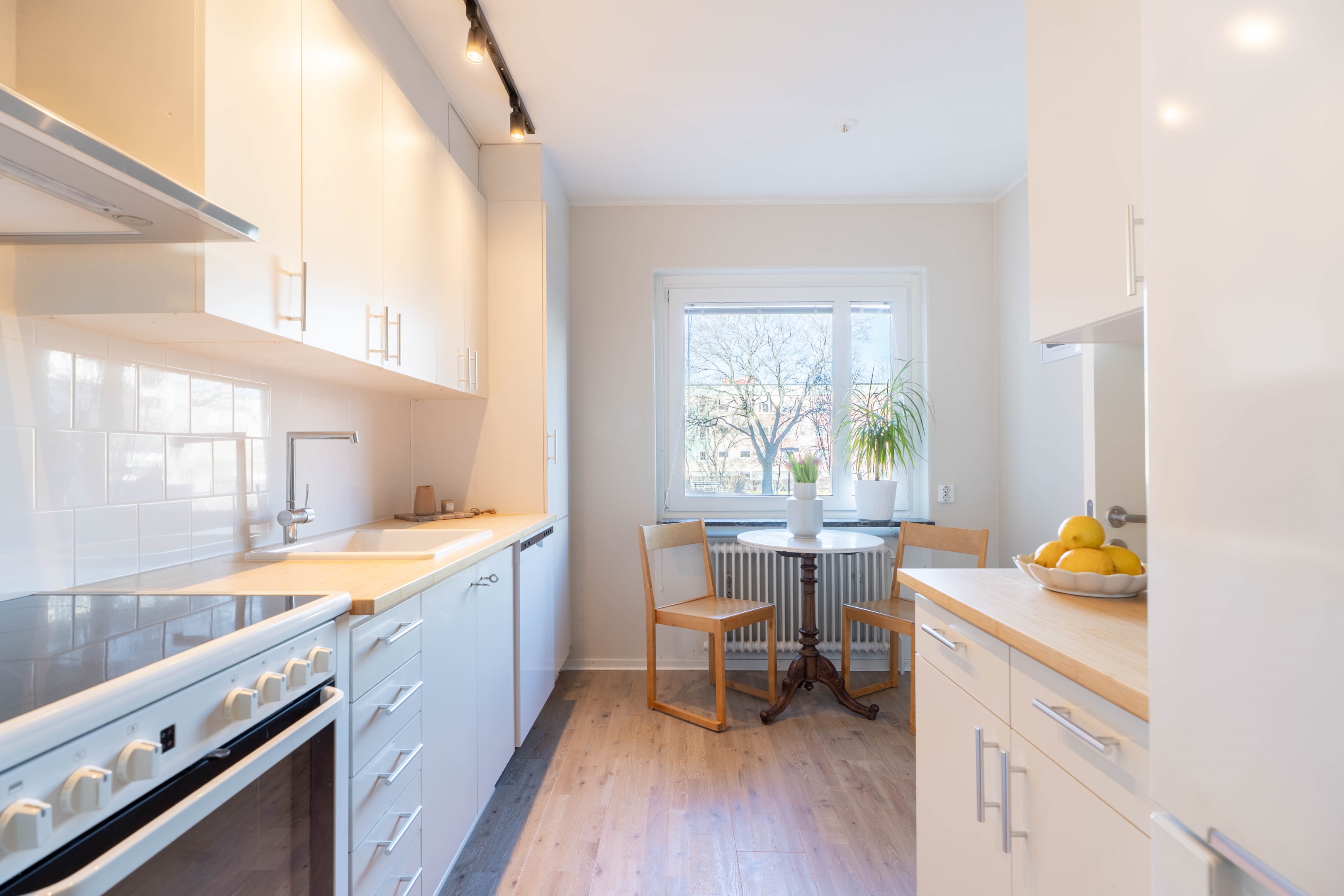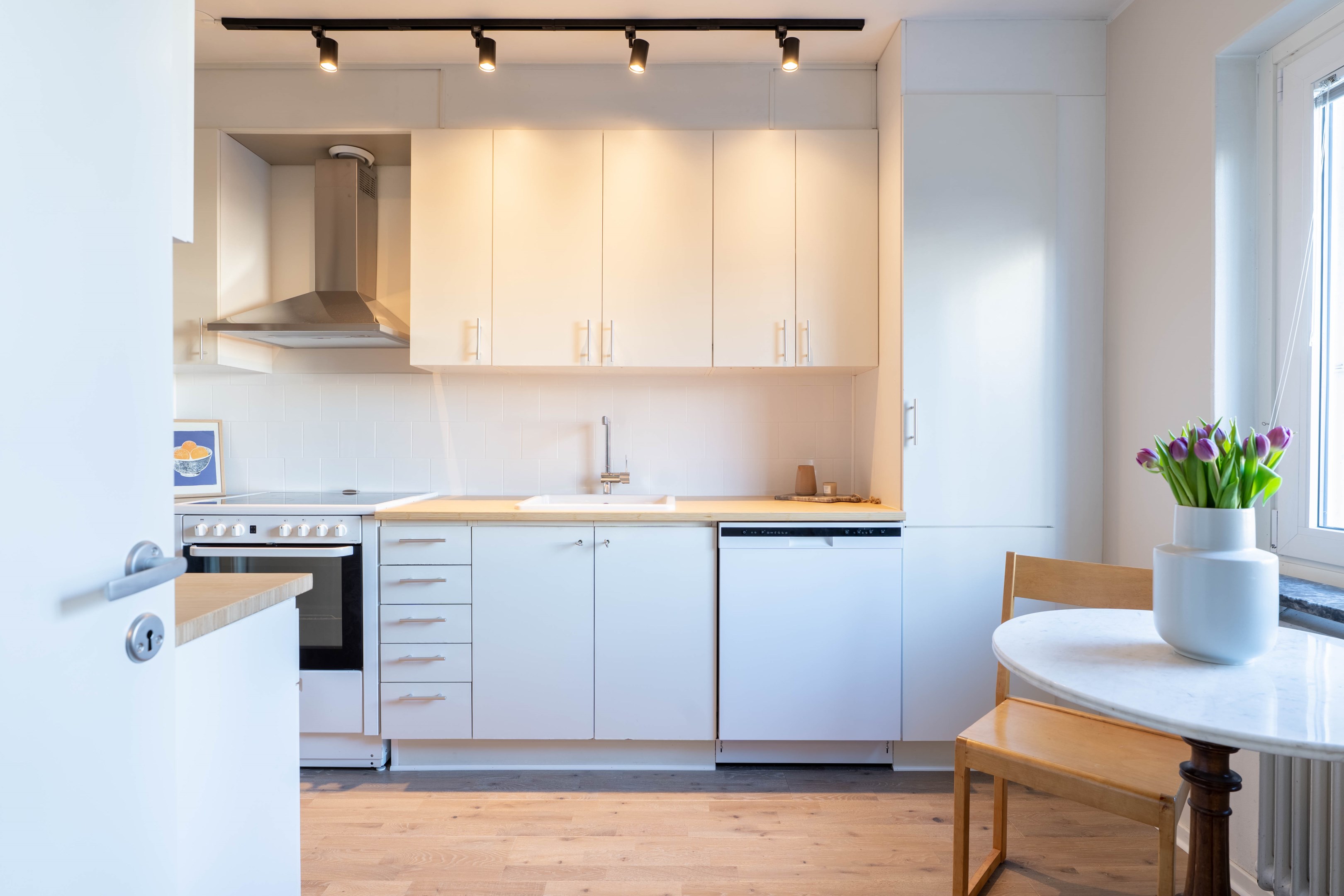 Varmt välkommen till denna stilrena och inbjudande tvåa på eftertraktade Norr – ett hem som kombinerar smart planlösning med moderna och fräscha ytskikt! Redan i hallen möts du av en ljus och välkomnande atmosfär med generösa ytor för avhängning samt utmärkt förvaring i en praktisk klädkammare. Vidare in i bostaden finner du det smakfulla köket som går i ljusa, tidlösa nyanser. Här flödar dagsljuset in och skapar en trivsam miljö med gott om plats för matbord – perfekt för både vardagsmiddagar och sociala tillställningar. Förvaringsmöjligheterna är rikliga med både skåp och lådor & diskmaskinen förenklar vardagen. Det nyligen renoverade badrummet erbjuder en modern och stilren känsla med dusch bakom eleganta vikbara glasdörrar, kommod med handfat, wc samt bekvämligheten av egen kombinerad tvättmaskin/torktumlare. Sovrummet är rofyllt och generöst tilltaget med plats för en dubbelsäng och möjlighet att komplettera med garderob efter behov. Det luftiga vardagsrummet blir hemmets naturliga samlingspunkt – en social yta med gott om plats för en större soffgrupp, matbord och övrigt möblemang om det önskas. Härifrån når du även den mysiga inglasade balkongen, som vetter lugnt mot föreningens grönskande innergård och erbjuder plats för utemöbler – en perfekt oas för avkoppling. Bostaden har dessutom nyligen uppdaterats med nya ytskikt i form av ett enhetligt golv och nymålade väggar i ljusa, moderna färgval, vilket skapar ett genomgående fräscht och harmoniskt intryck.