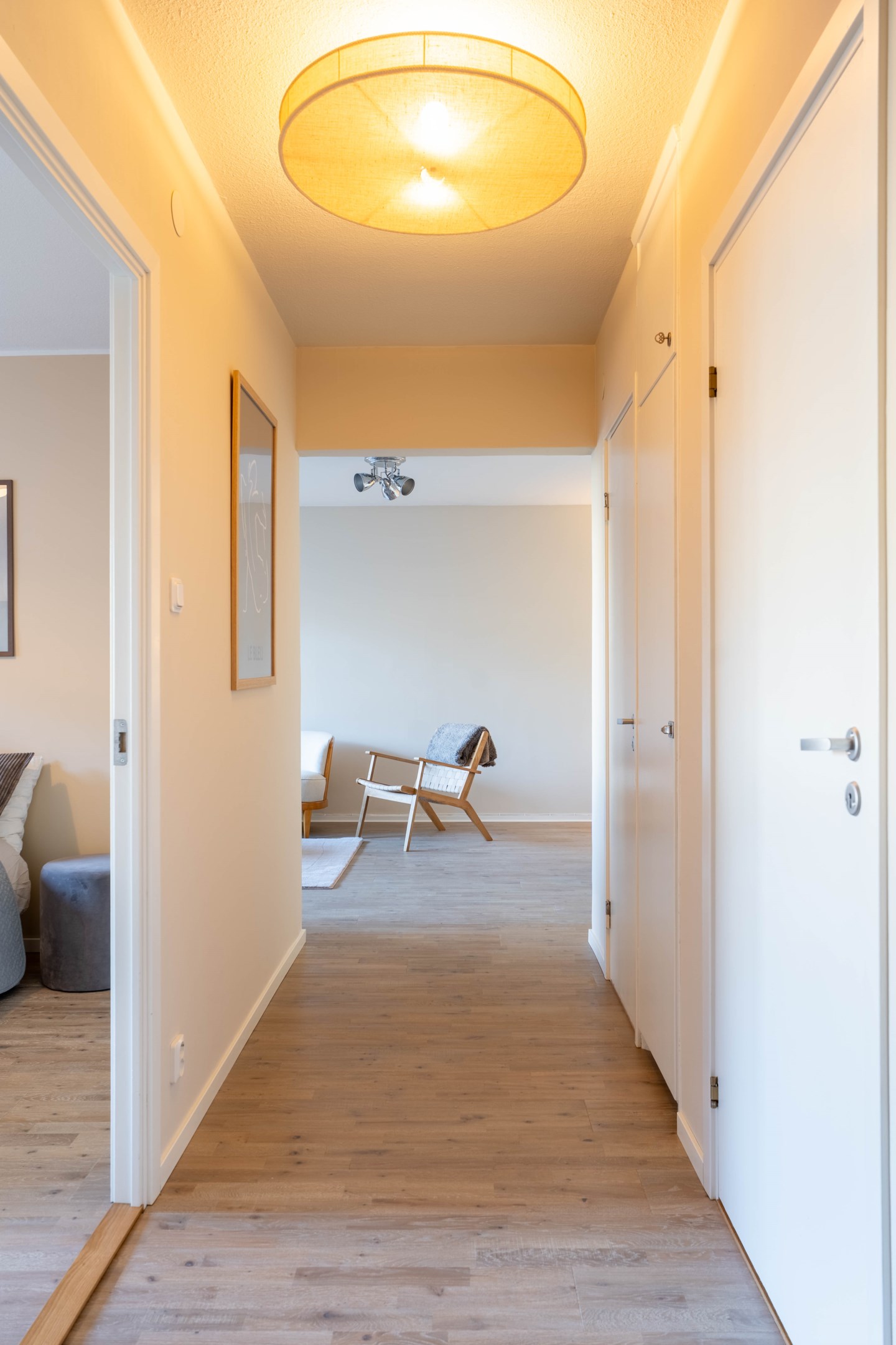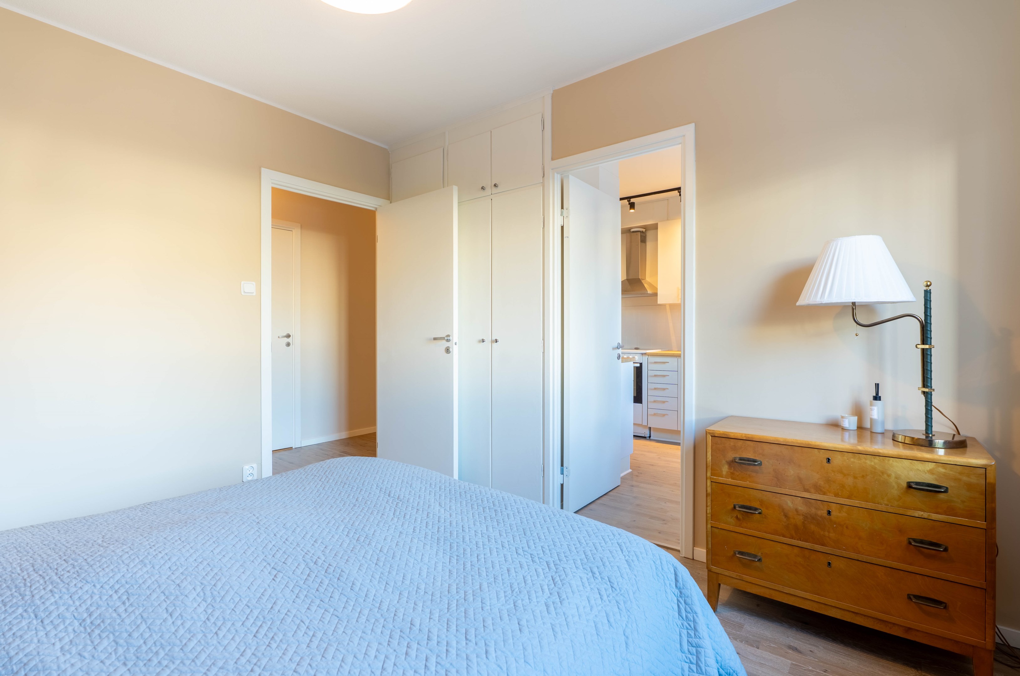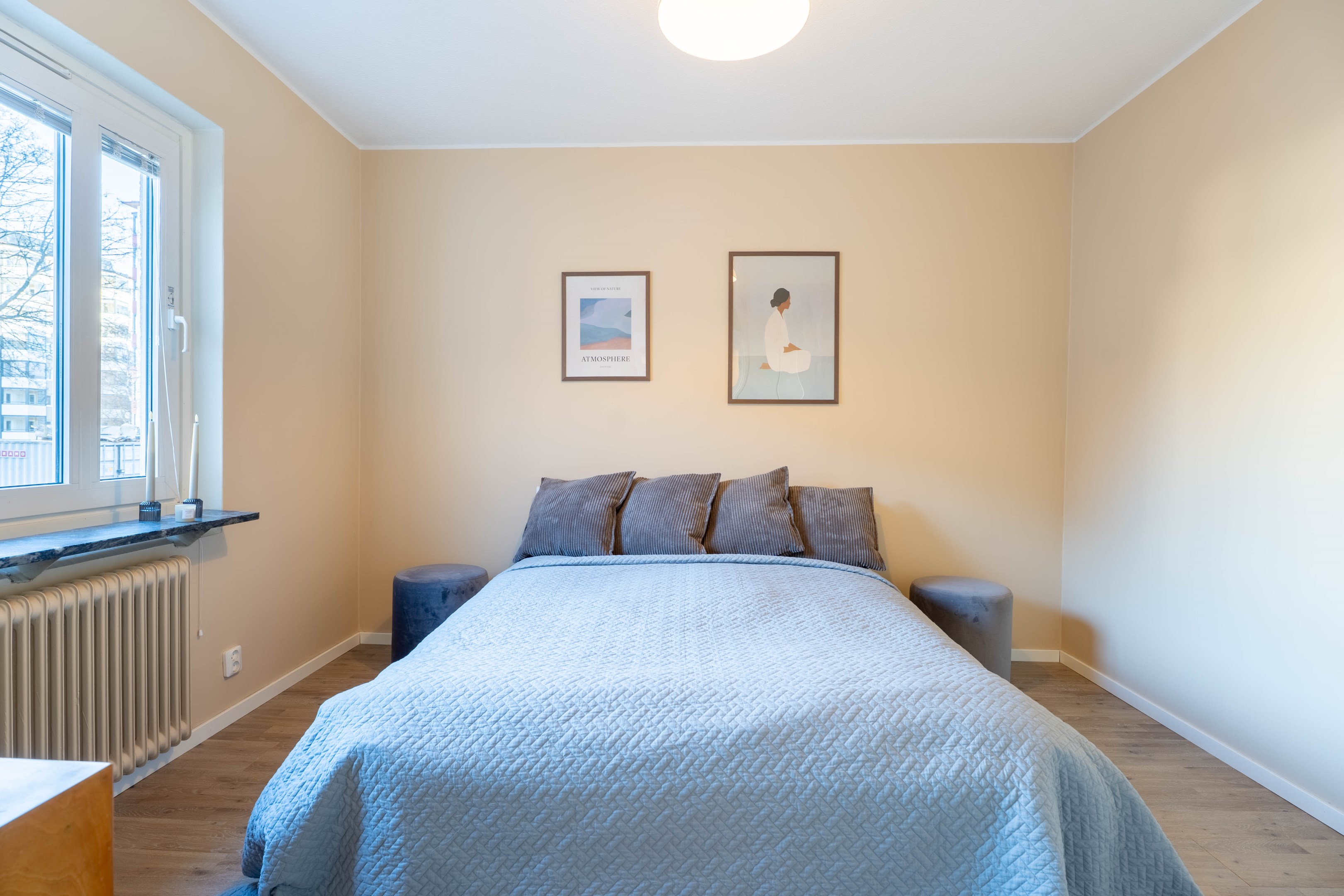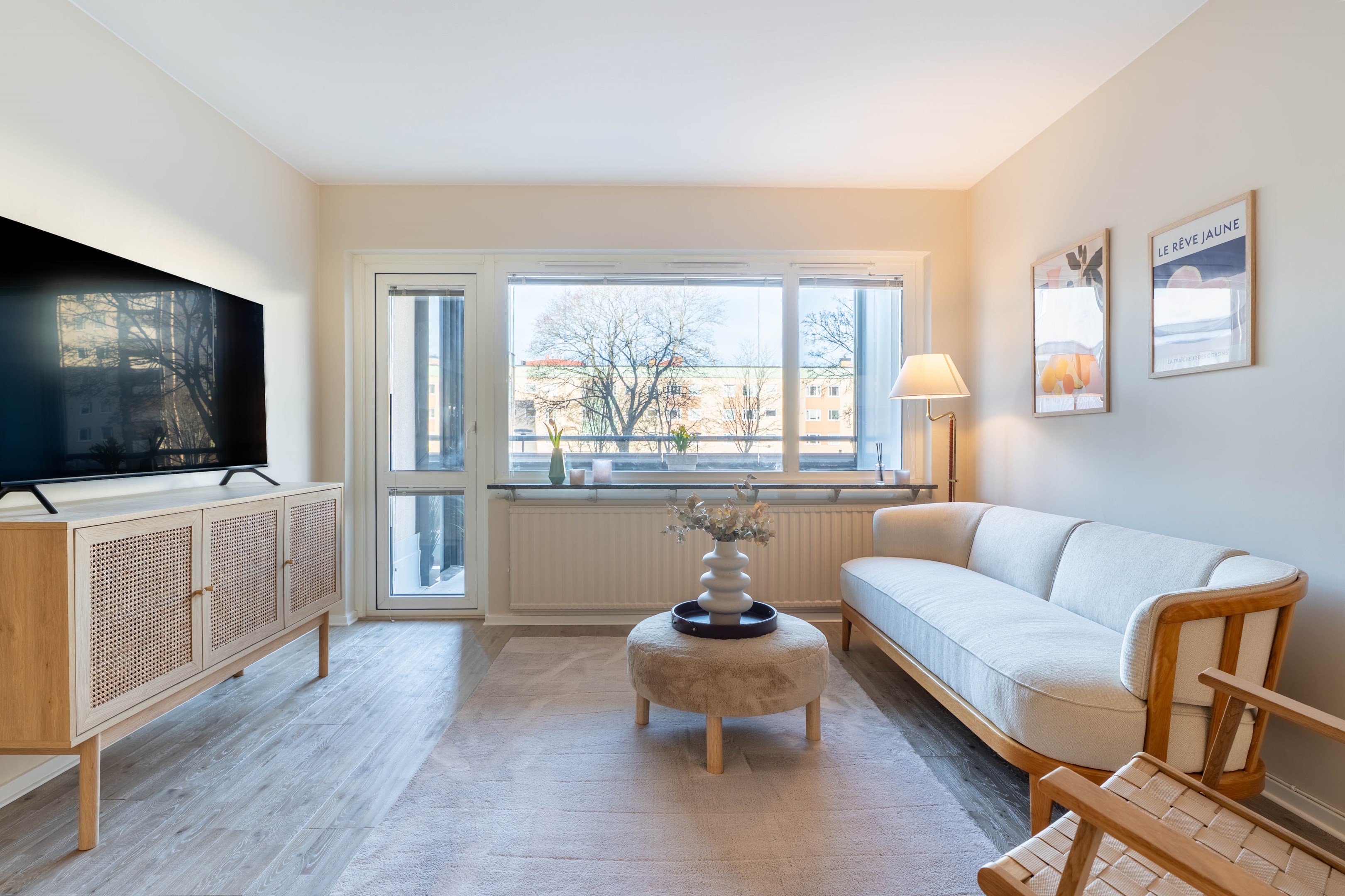 Varmt välkommen till denna stilrena och inbjudande tvåa på eftertraktade Norr – ett hem som kombinerar smart planlösning med moderna och fräscha ytskikt! Redan i hallen möts du av en ljus och välkomnande atmosfär med generösa ytor för avhängning samt utmärkt förvaring i en praktisk klädkammare. Vidare in i bostaden finner du det smakfulla köket som går i ljusa, tidlösa nyanser. Här flödar dagsljuset in och skapar en trivsam miljö med gott om plats för matbord – perfekt för både vardagsmiddagar och sociala tillställningar. Förvaringsmöjligheterna är rikliga med både skåp och lådor & diskmaskinen förenklar vardagen. Det nyligen renoverade badrummet erbjuder en modern och stilren känsla med dusch bakom eleganta vikbara glasdörrar, kommod med handfat, wc samt bekvämligheten av egen kombinerad tvättmaskin/torktumlare. Sovrummet är rofyllt och generöst tilltaget med plats för en dubbelsäng och möjlighet att komplettera med garderob efter behov. Det luftiga vardagsrummet blir hemmets naturliga samlingspunkt – en social yta med gott om plats för en större soffgrupp, matbord och övrigt möblemang om det önskas. Härifrån når du även den mysiga inglasade balkongen, som vetter lugnt mot föreningens grönskande innergård och erbjuder plats för utemöbler – en perfekt oas för avkoppling. Bostaden har dessutom nyligen uppdaterats med nya ytskikt i form av ett enhetligt golv och nymålade väggar i ljusa, moderna färgval, vilket skapar ett genomgående fräscht och harmoniskt intryck.