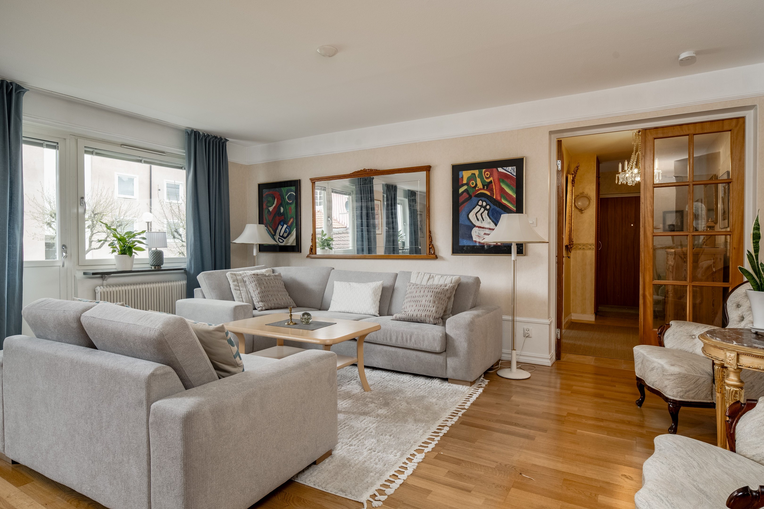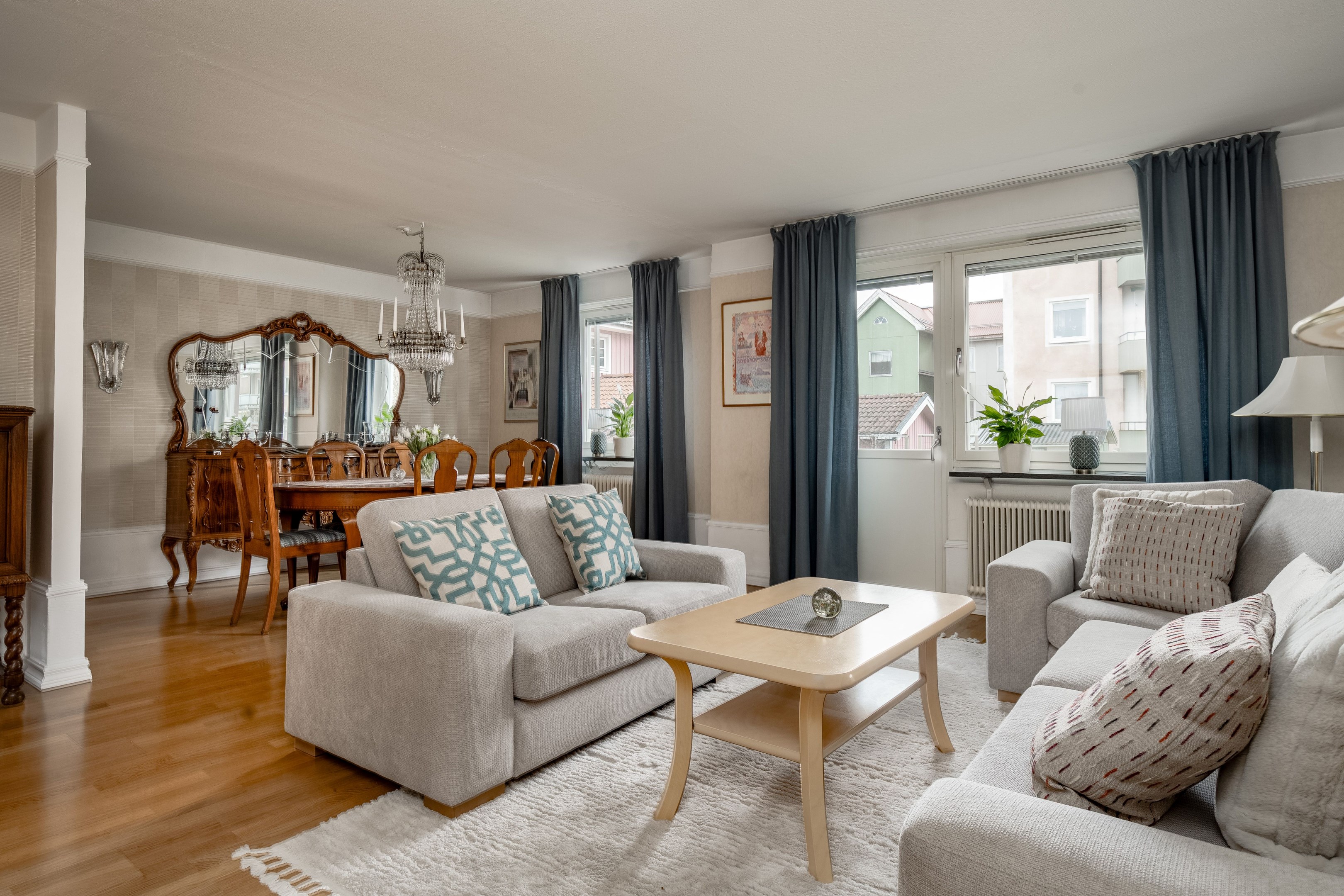 Rymlig och välplanerad 3:a om 90 kvm i centralt läge med låg hyra. Bostaden har tidigare varit en 4:a och kan enkelt återställas för den som önskar ytterligare ett sovrum eller arbetsrum. Här erbjuds ett generöst vardagsrum med gott om plats för både soffgrupp och matsalsmöbel samt utgång till balkong i soligt sydostläge. Lägenheten har två bra sovrum, ett stilrent badrum med kakel och klinker samt en praktisk gästtoalett. Goda förvaringsmöjligheter finns genom två tillhörande förråd. Ett attraktivt boende med centralt läge nära service, kommunikationer och stadens utbud.